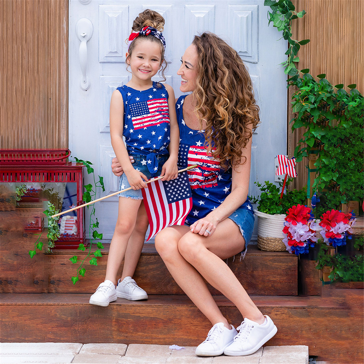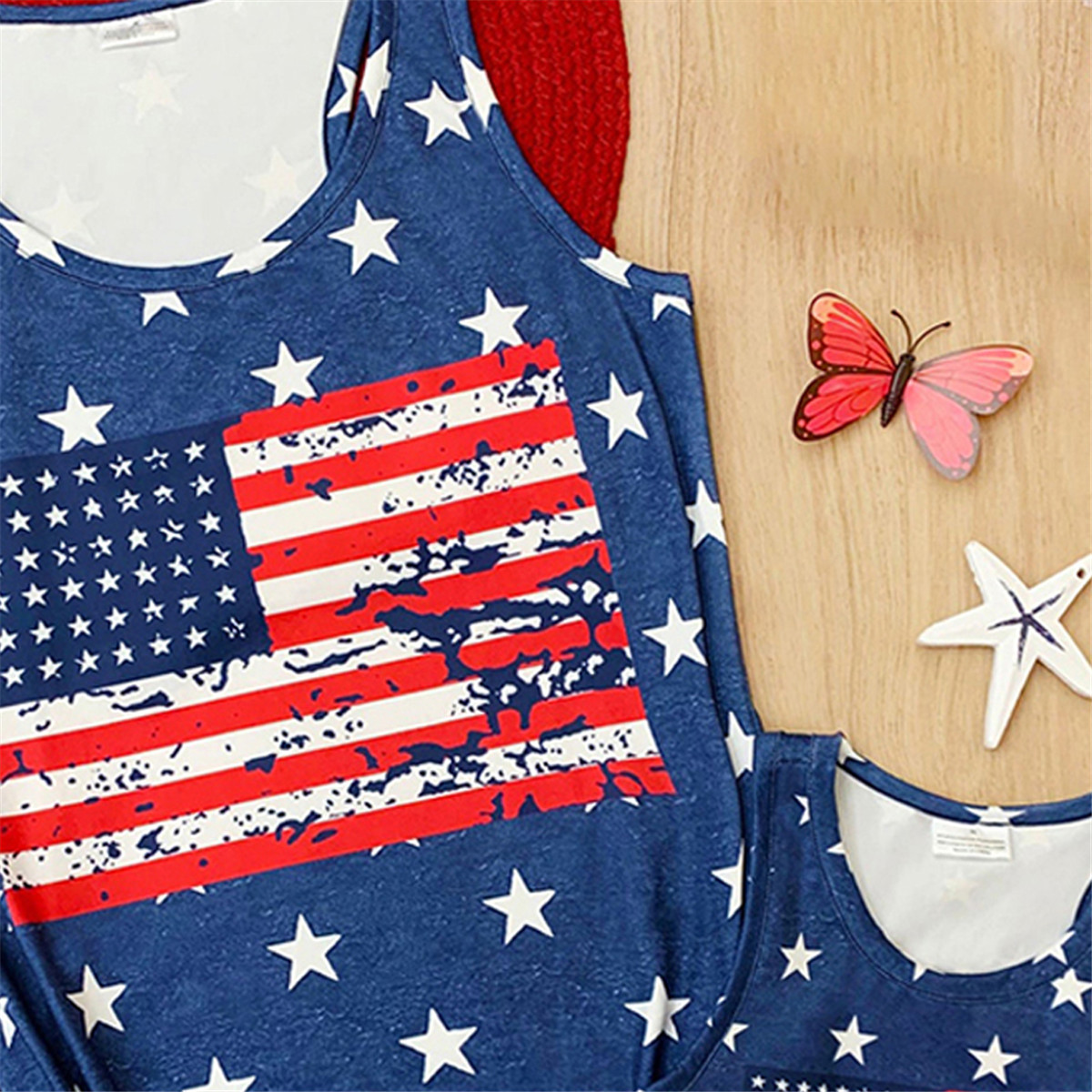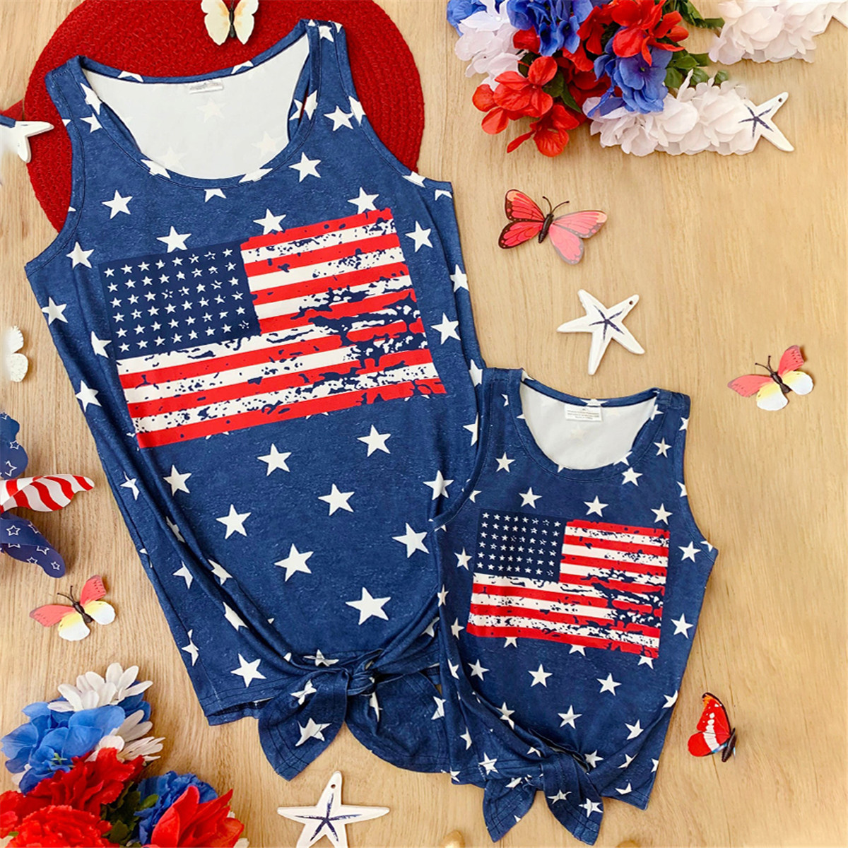 Causal Independence Day Pattern Print Sleeveless T-shirt for Mom and Me Wholesale