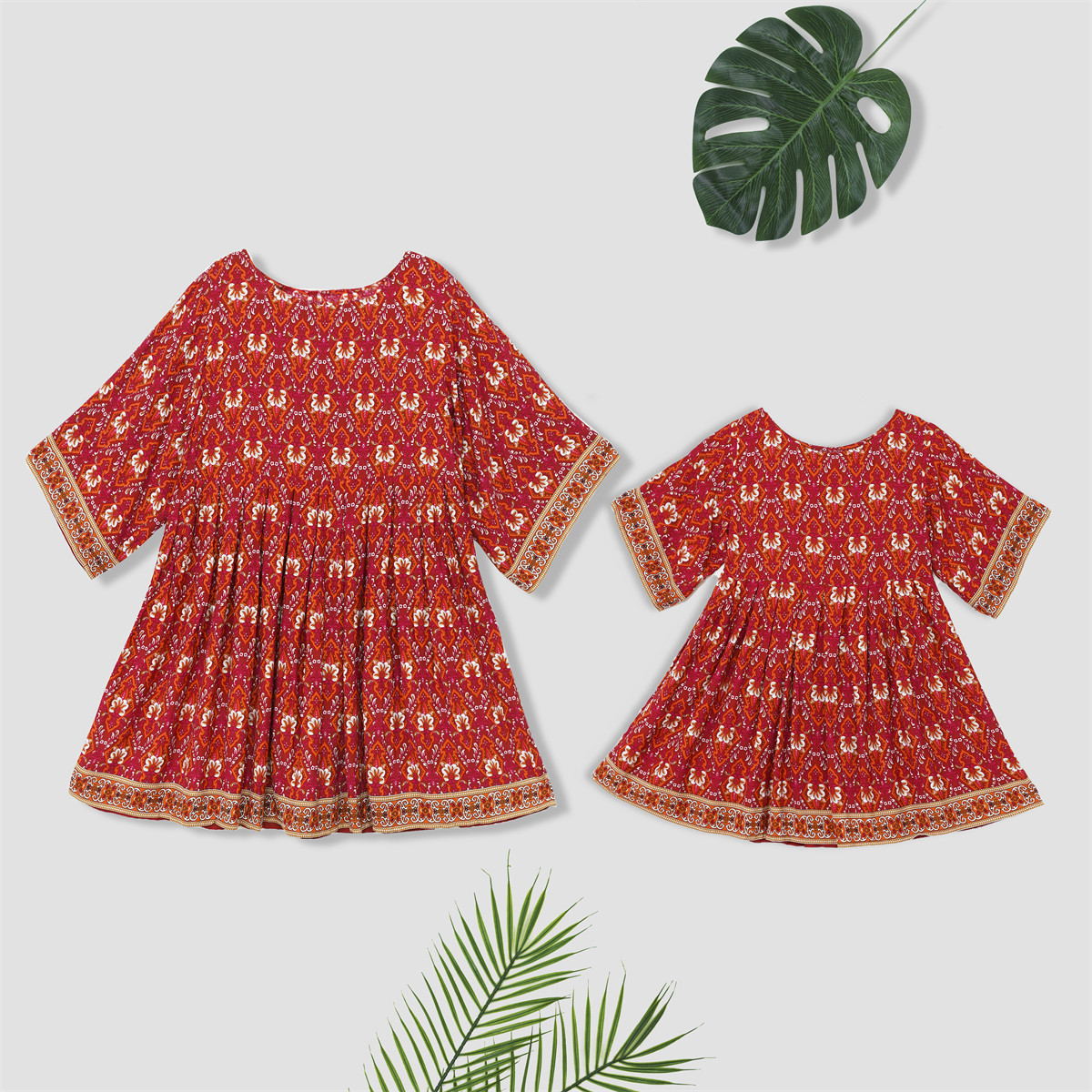 Elegant Bohemia Pattern Print Dress for Mom and Me Wholesale