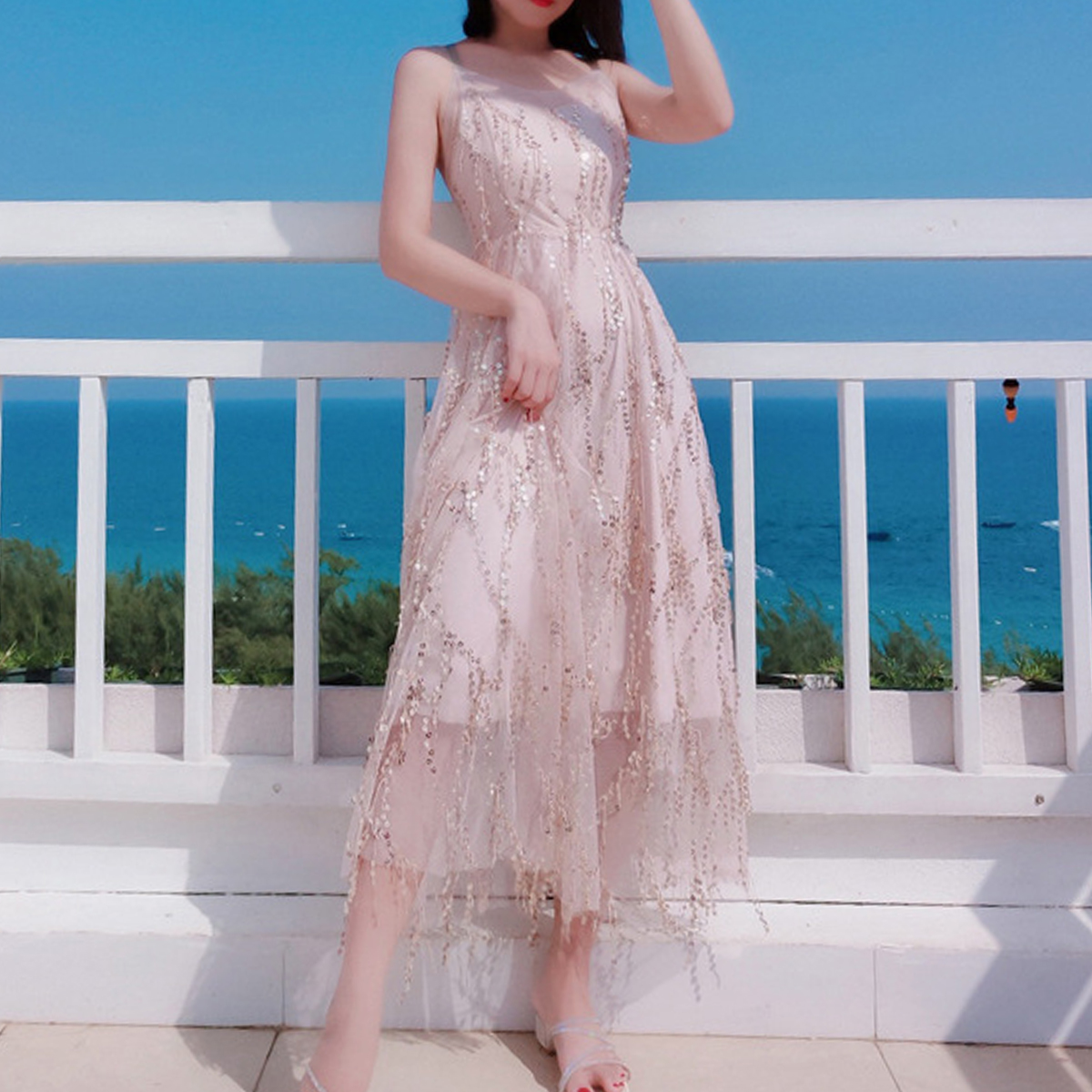 Elegant Solid Color Sequins Long Dress for Mom and Me Wholesale