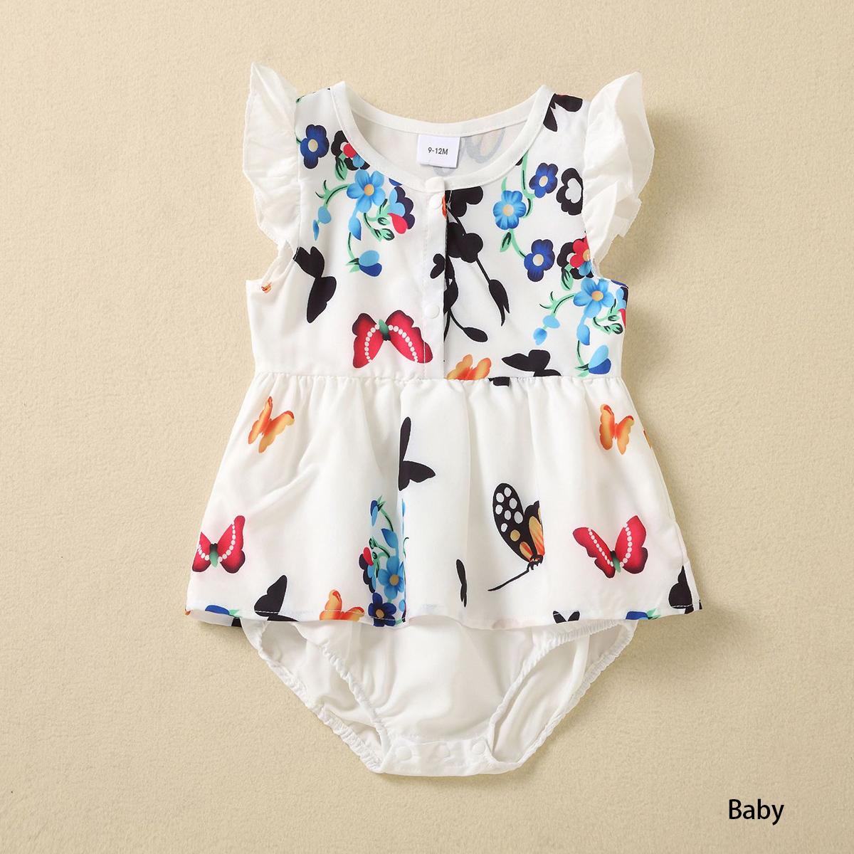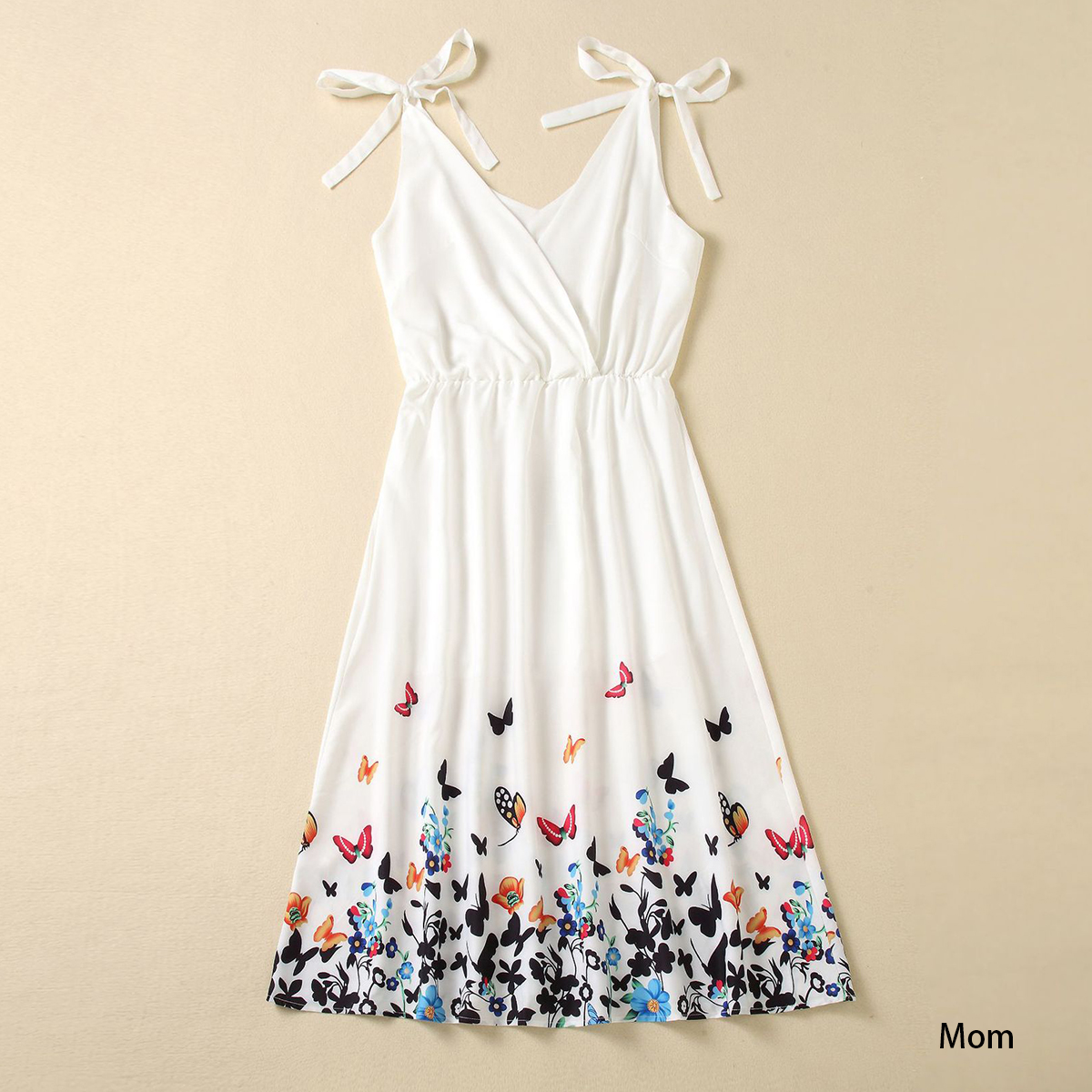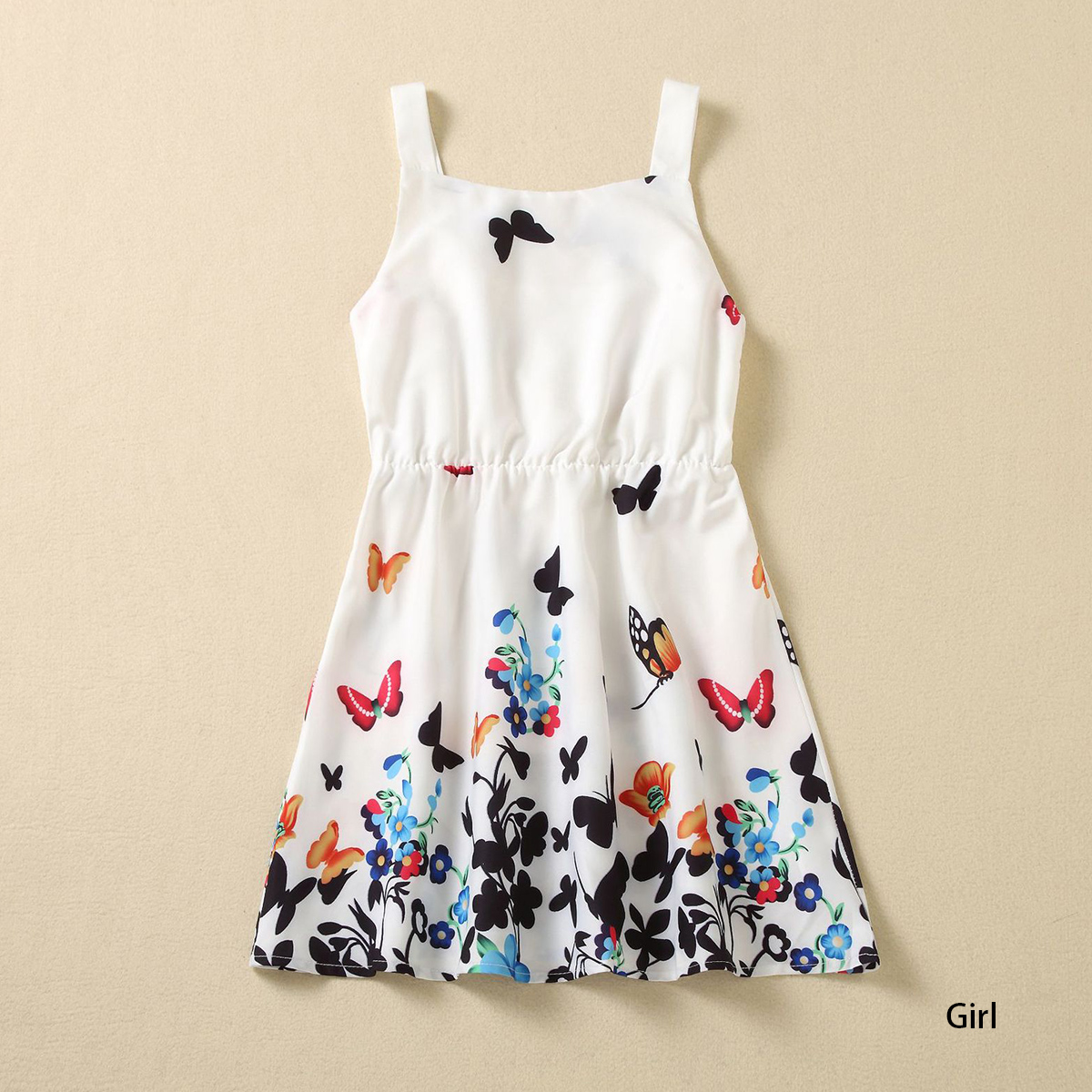Family Matching Butterfly Print Sleeveless Dress and T-shirt Wholesale