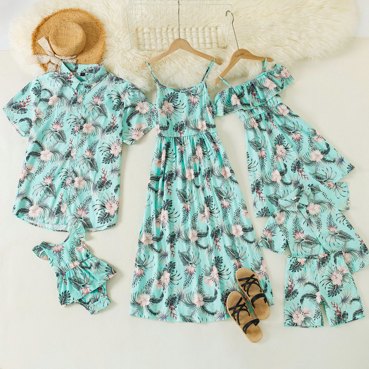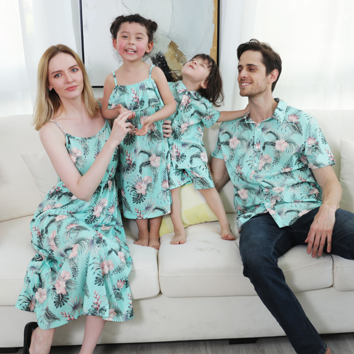 Family Matching Floral Print Sleeveless Dress and T-shirt Wholesale