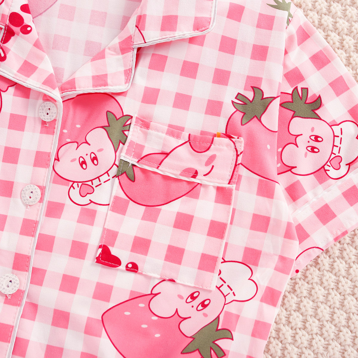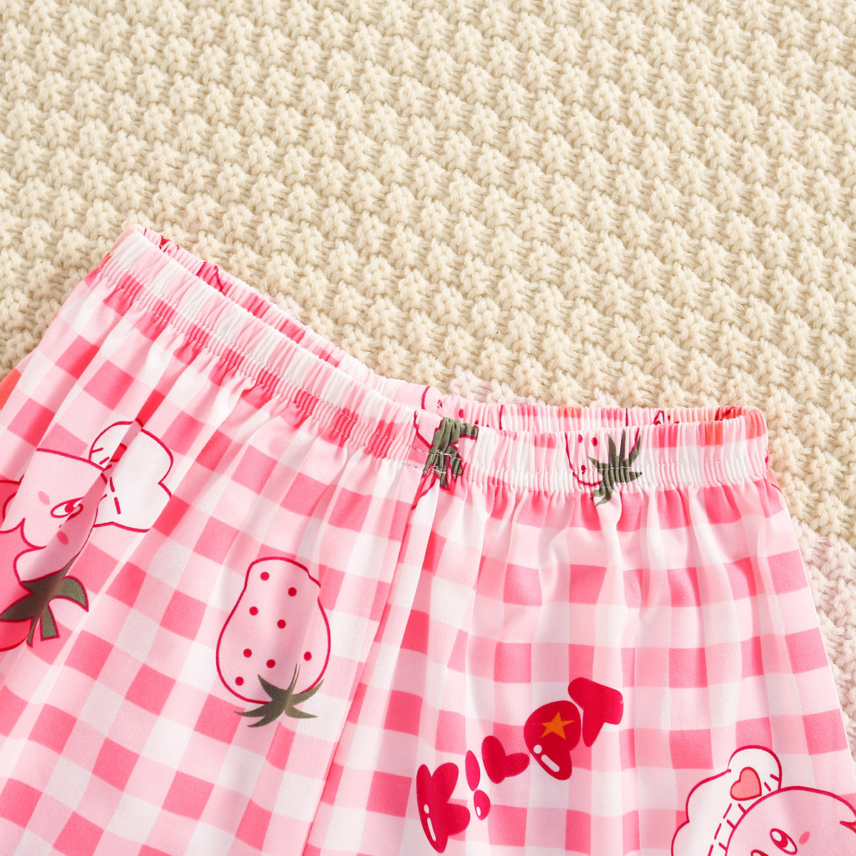 Girls Summer Cute Cartoon Plaid T-shirt & Shorts Wholesale