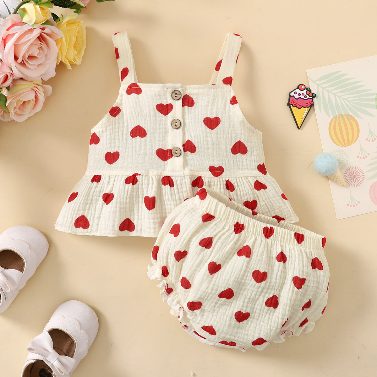 hibobi Baby Girl Love Pattern Cotton Tops and Shorts Wholesale