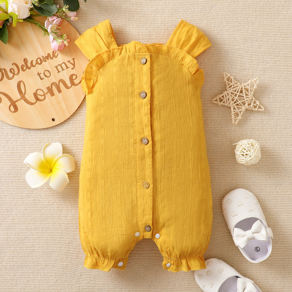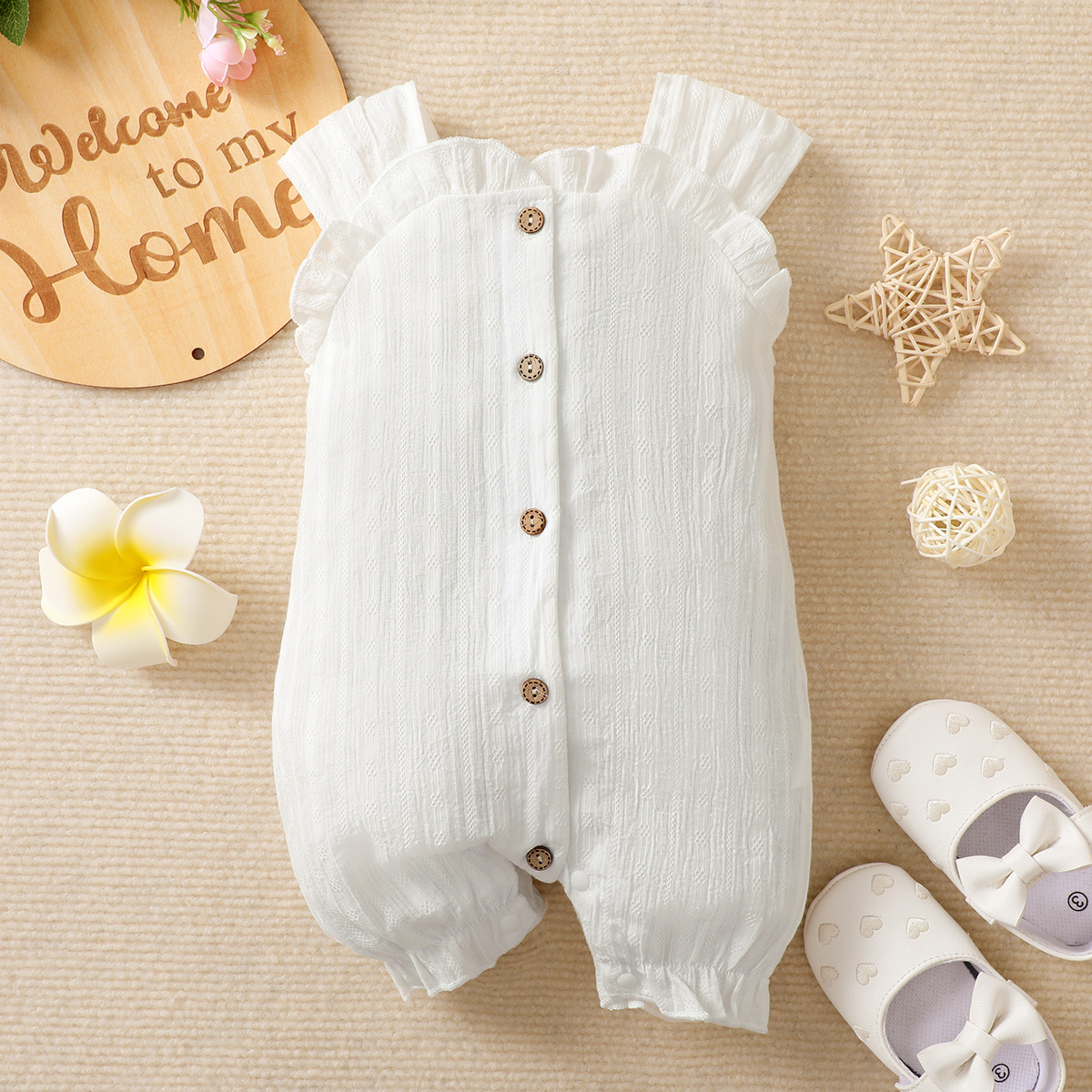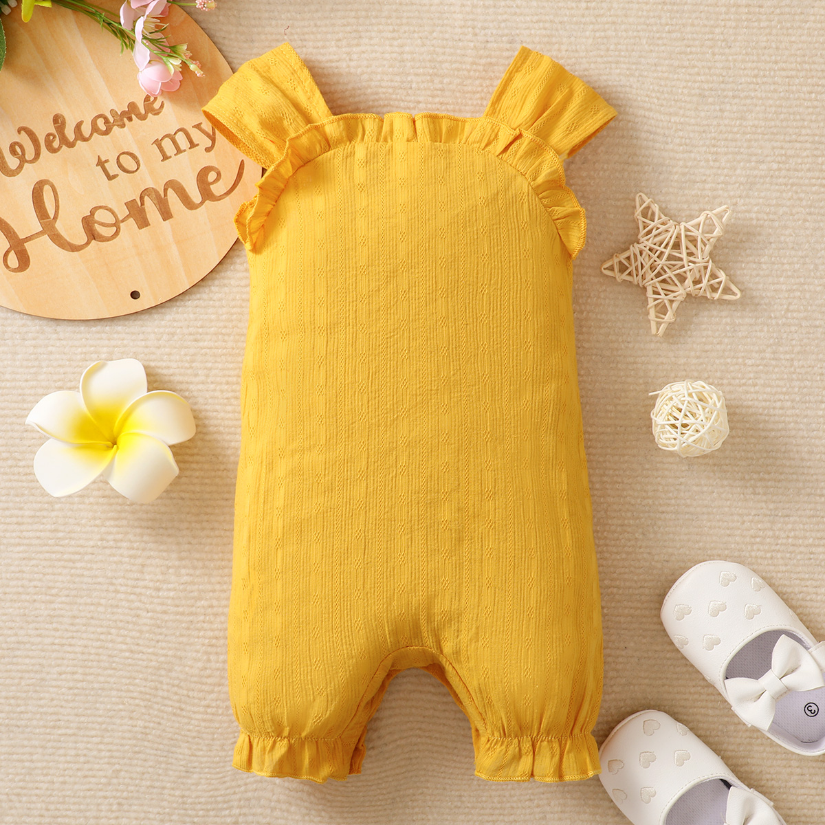 hibobi Baby Girl Solid Color Pure Ruffle Cotton Bodysuit Wholesale