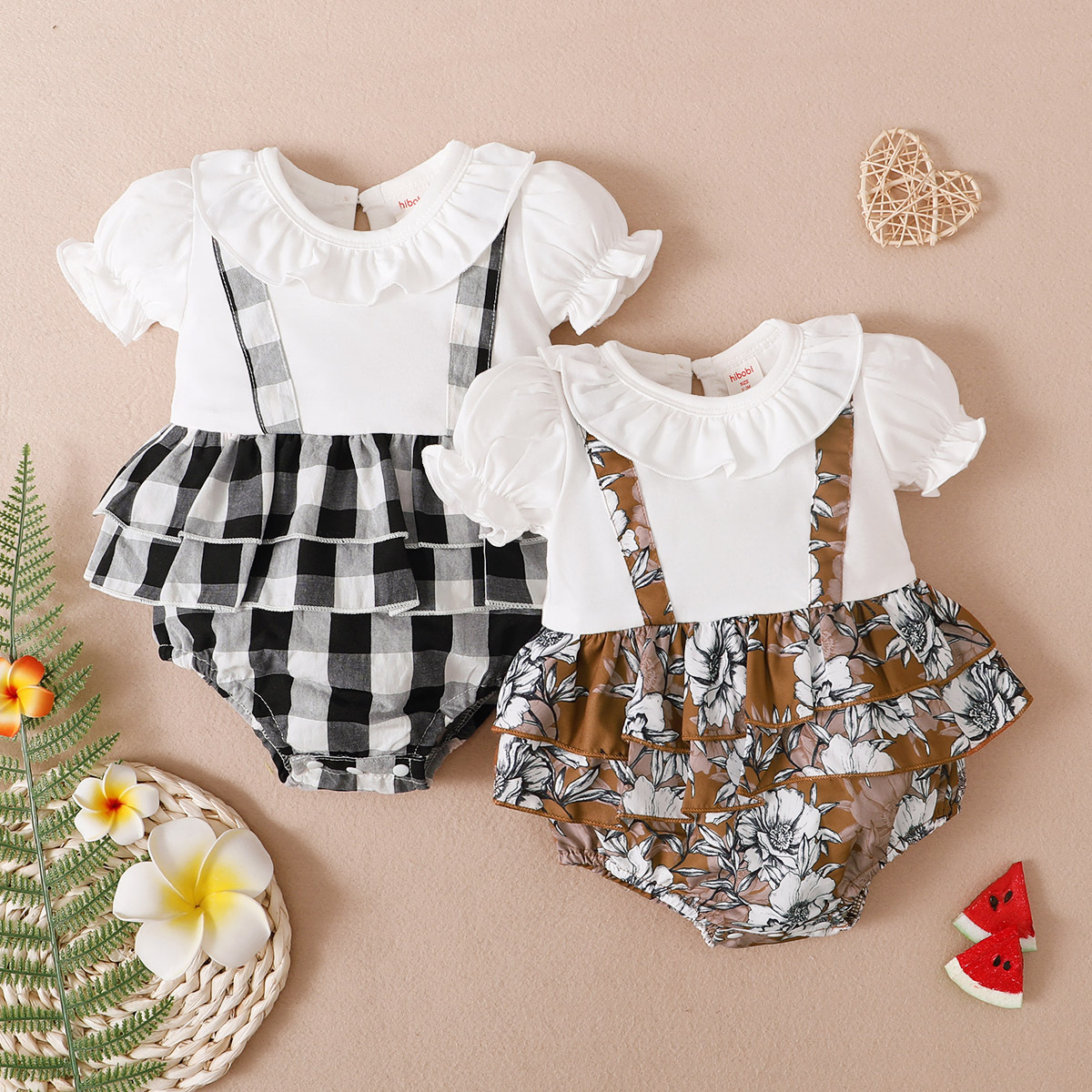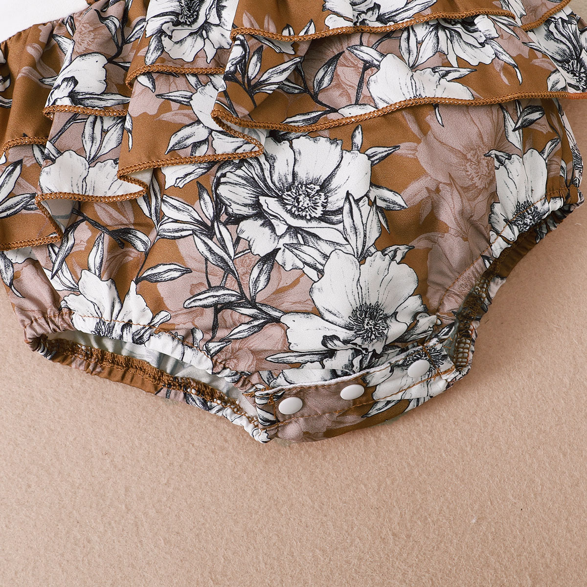 hibobi Baby Girl Sweet Floral Printe Ruffle Bodysuit Wholesale
