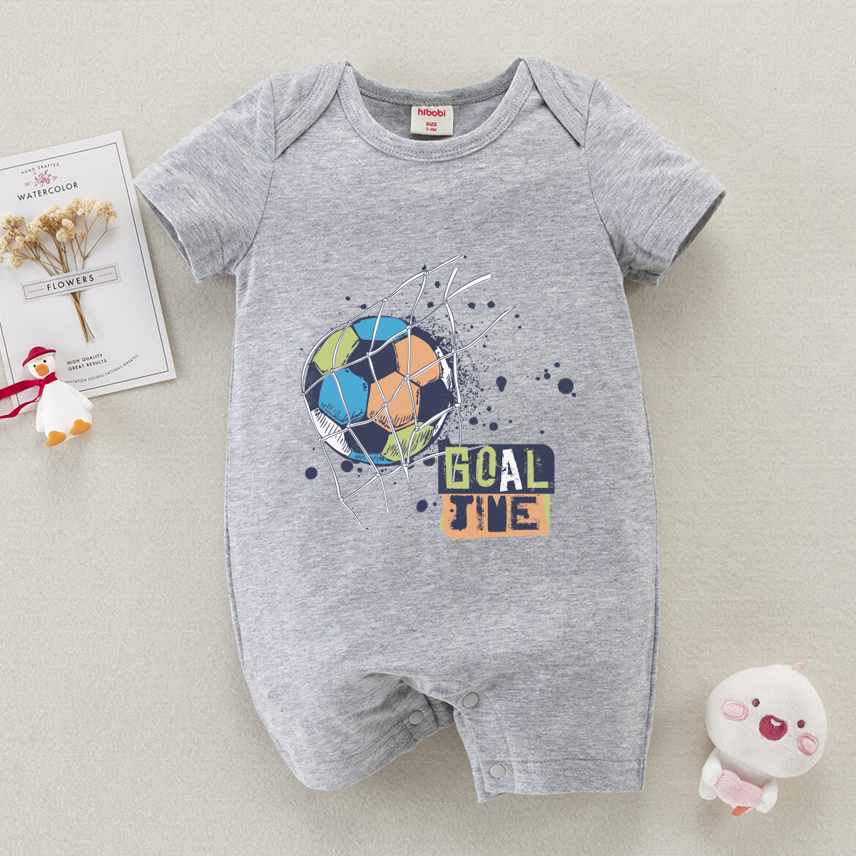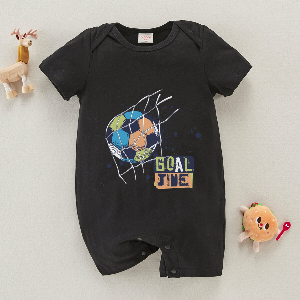 hibobi Boy Baby Colorful Football Shot On Goal Print Short Sleeve Bodysuit Wholesale