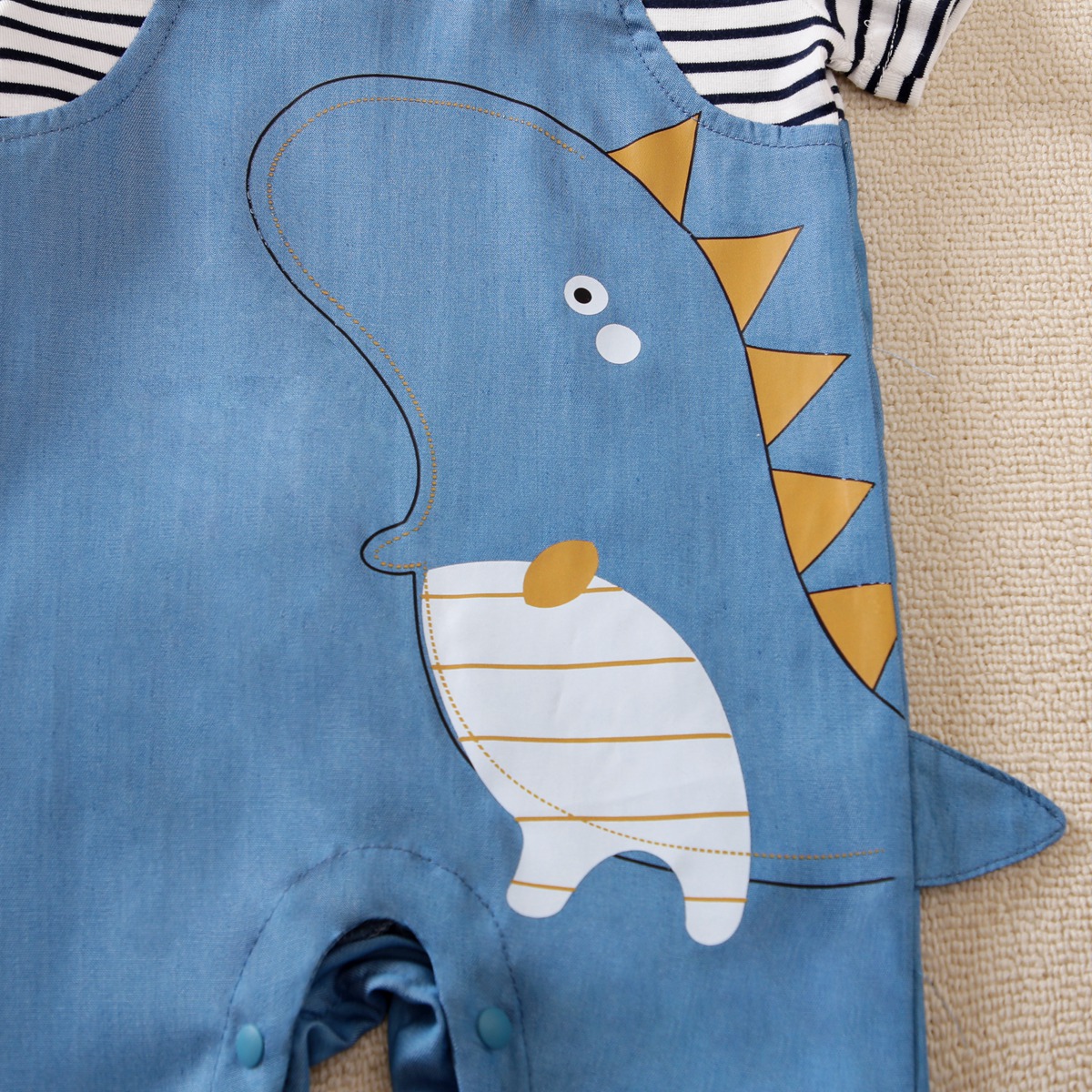 hibobi Boy Baby Striped Dinosaur Three-Dimensional Tail Bodysuit Wholesale