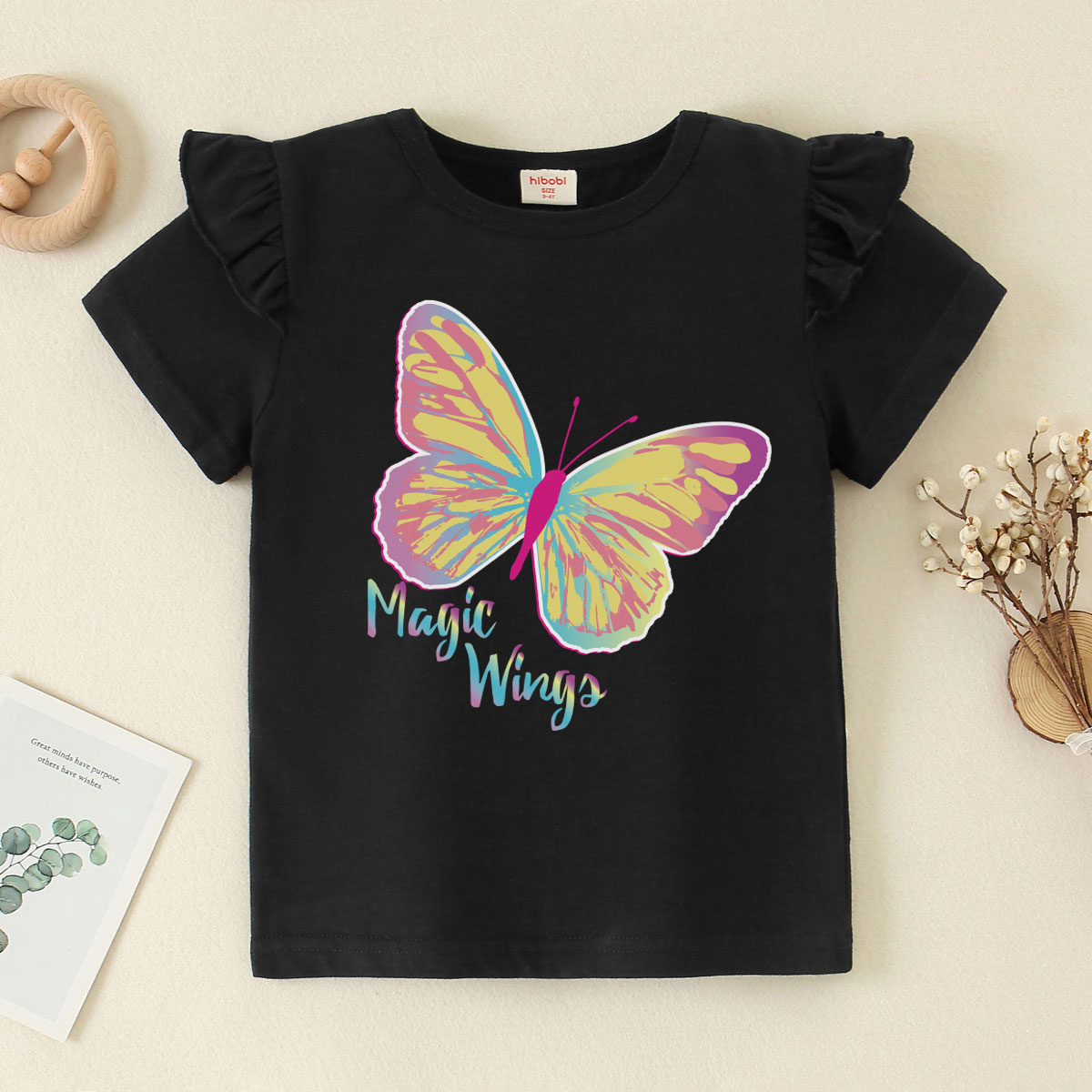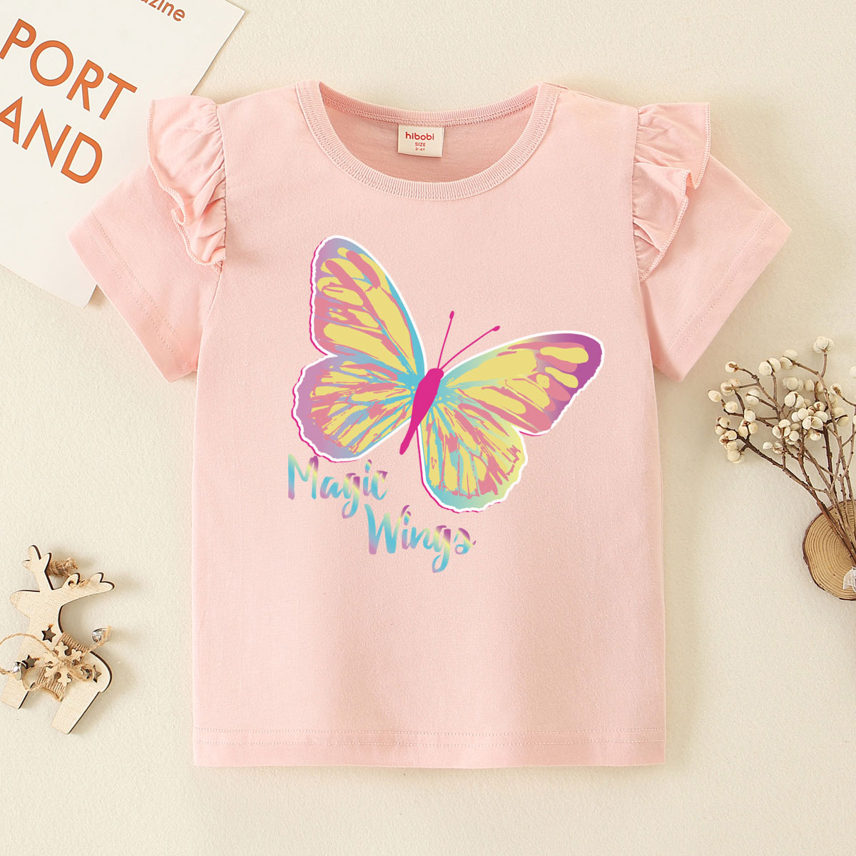 Toddler Girl Baby Basic Dazzling Butterfly Sleeve T-shirt Wholesale