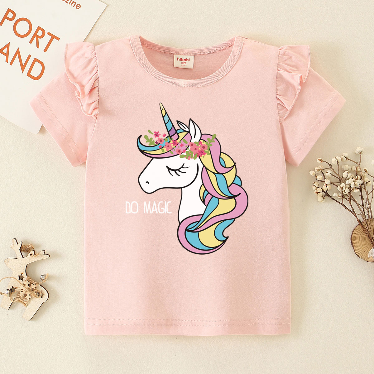 Toddler Girl Baby Colourful Unicorn Fly Sleeve T-shirt Wholesale