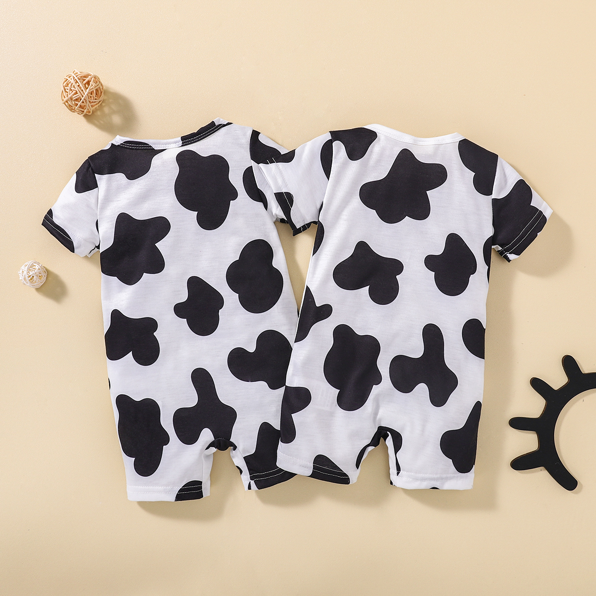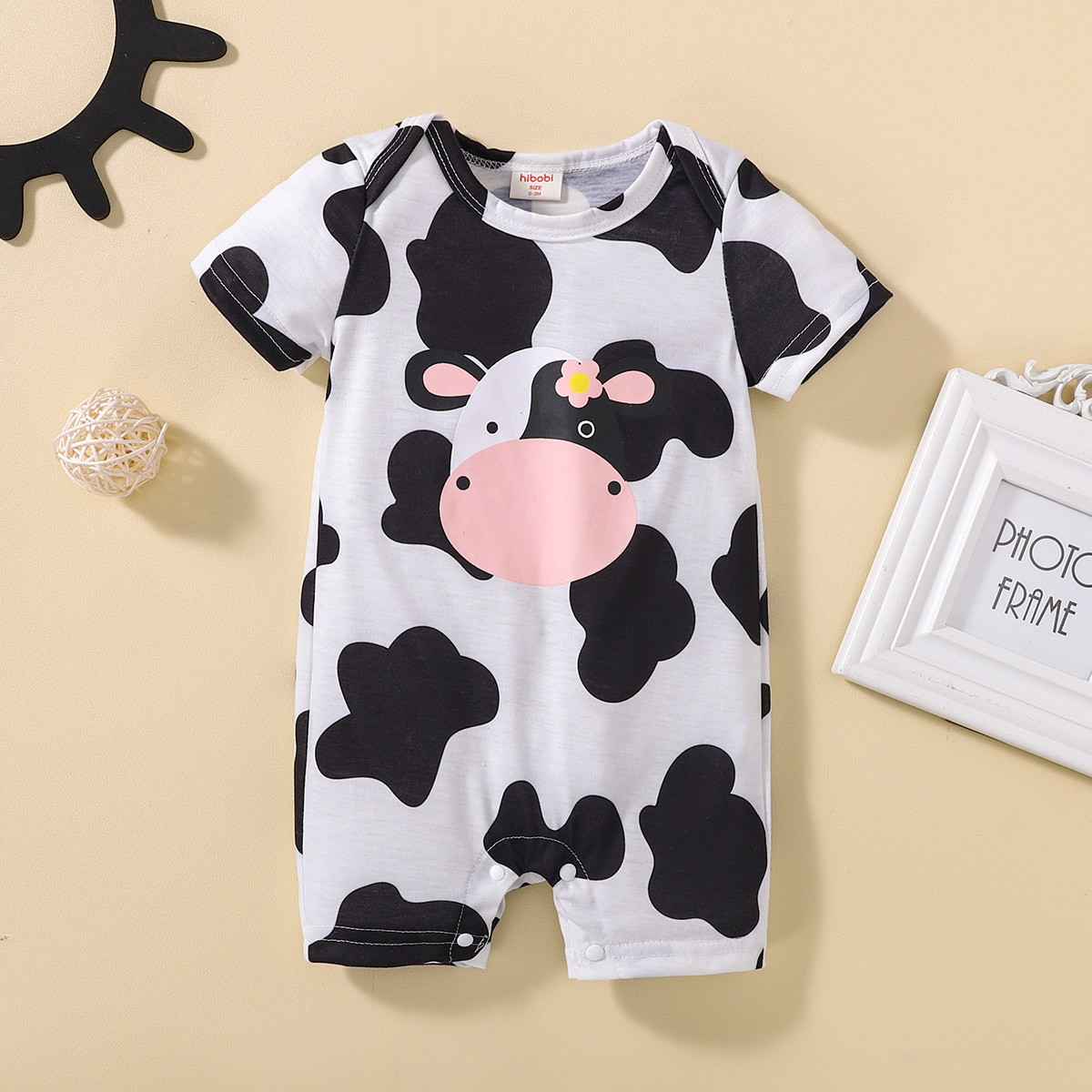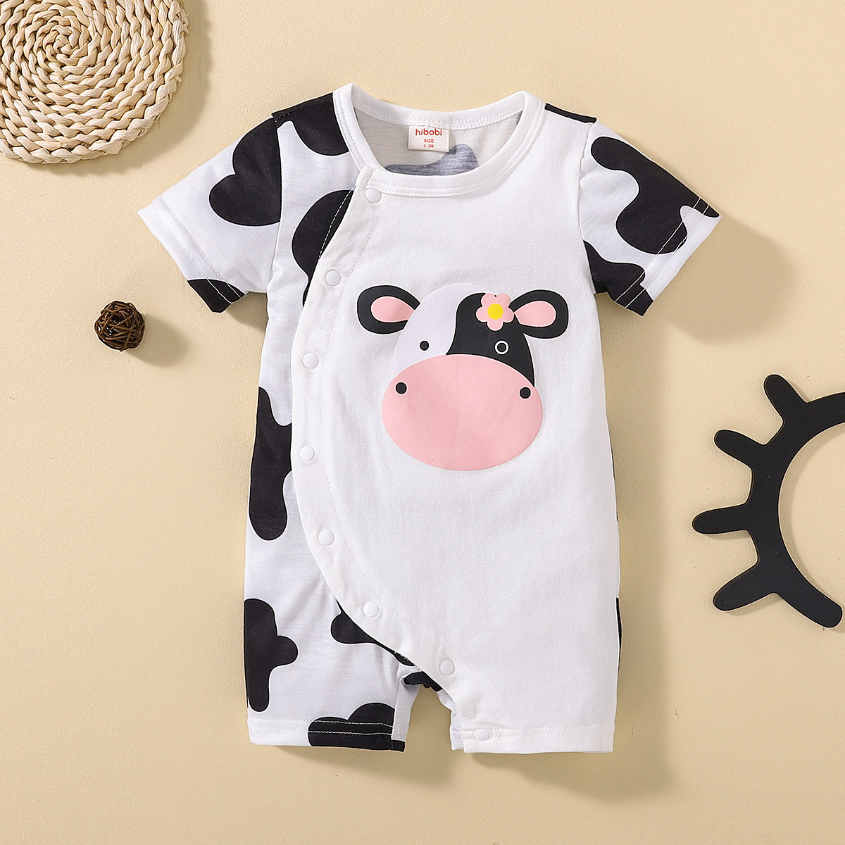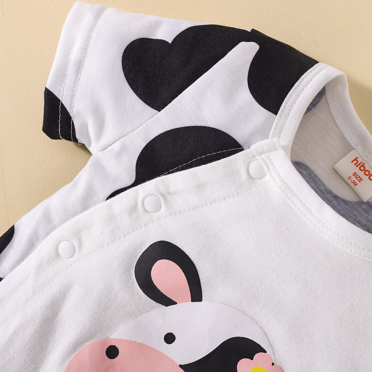 hibobi Girl Baby Cow Print Bodysuits Black & White Wholesale