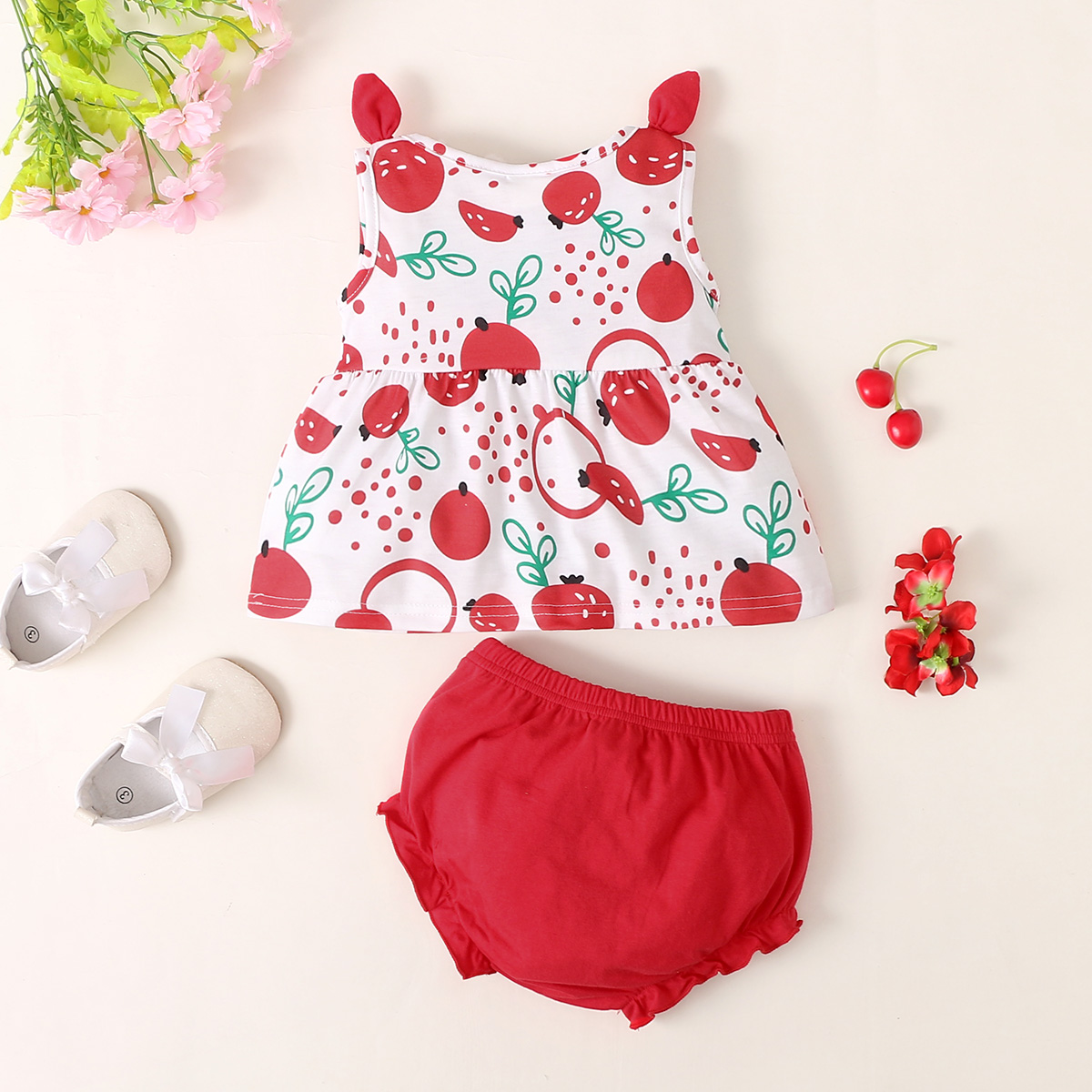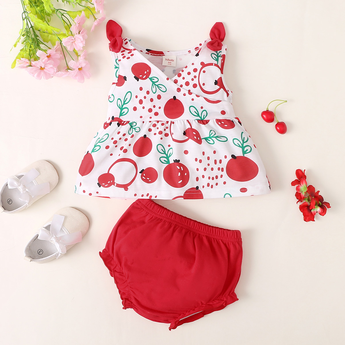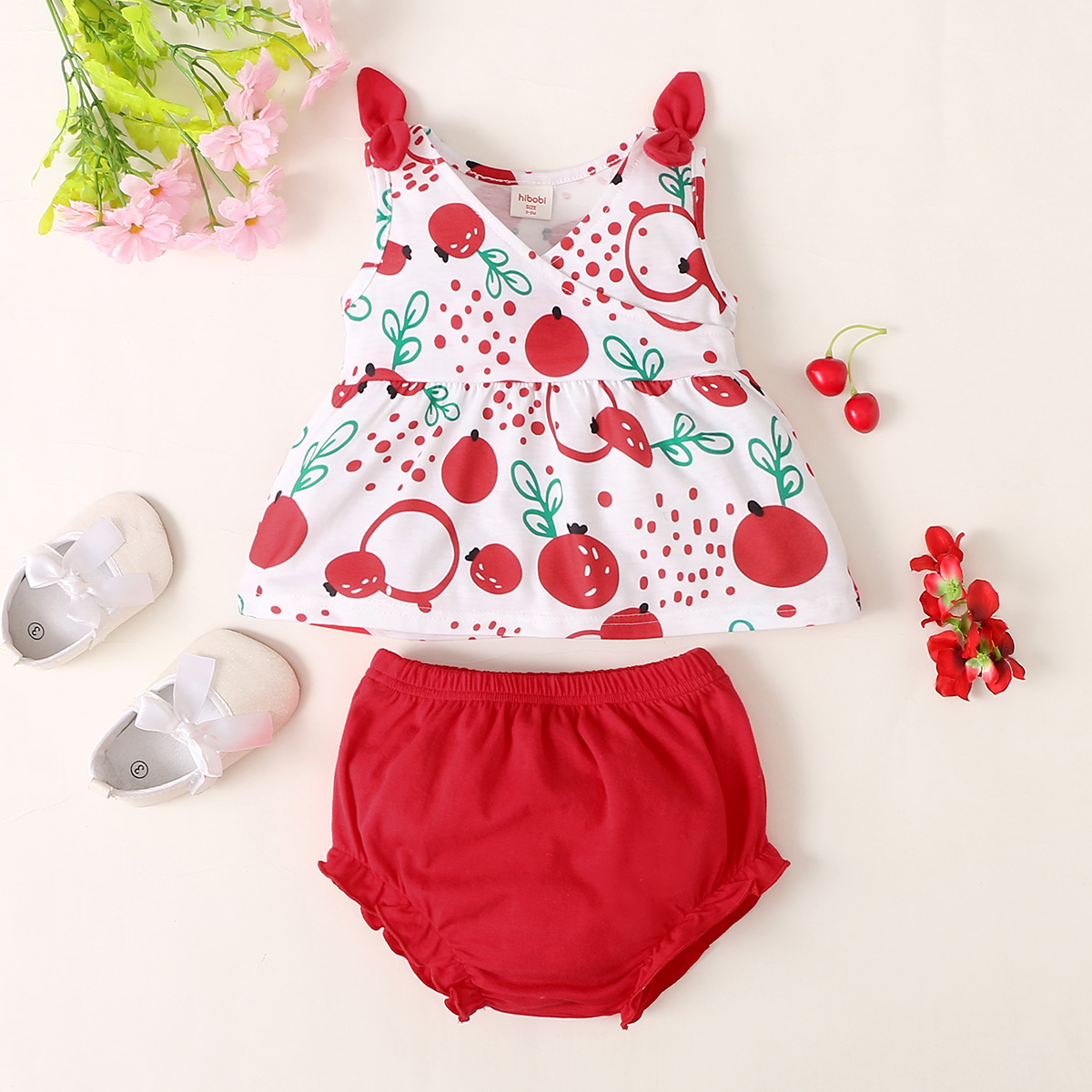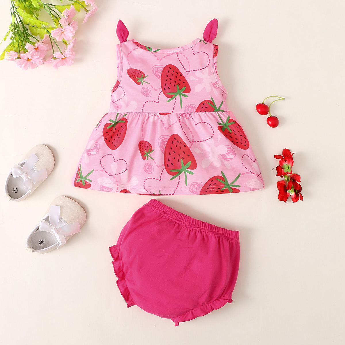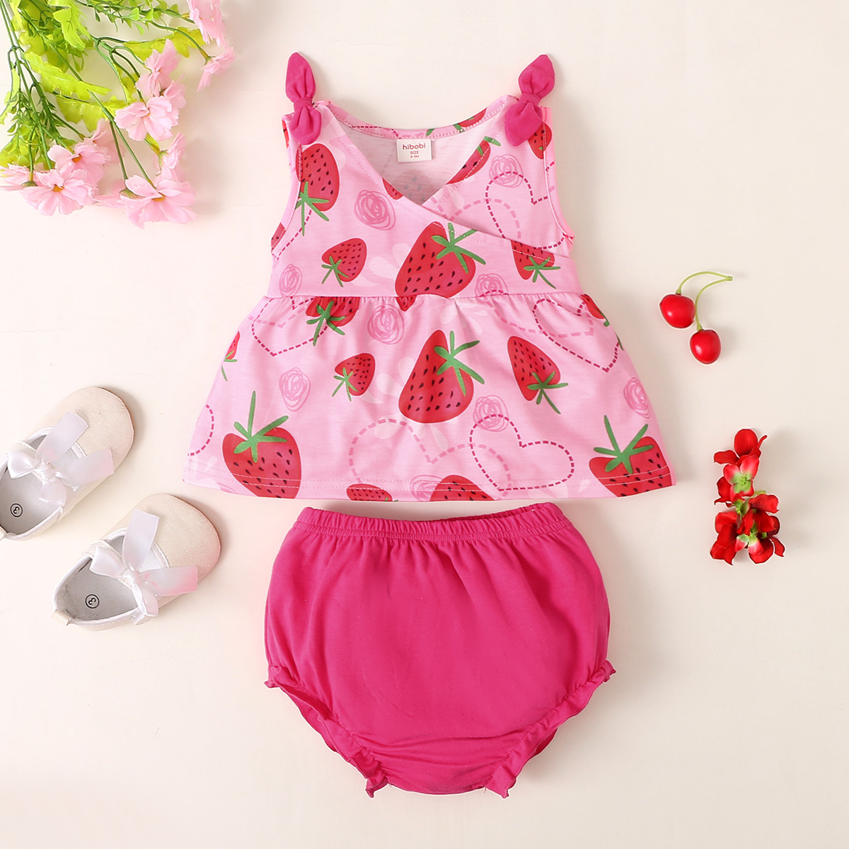 hibobi Girl Baby Cute Strawberry Camisole Suit Wholesale