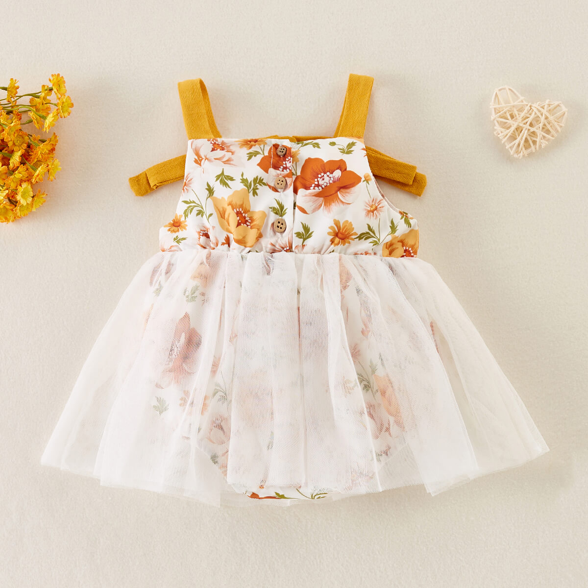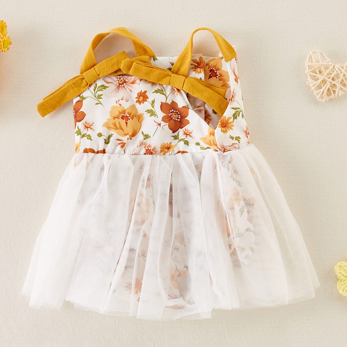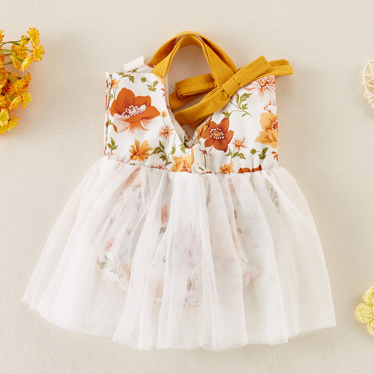 hibobi Girl Baby Floral Print Bow Talter Mesh Dress Wholesale