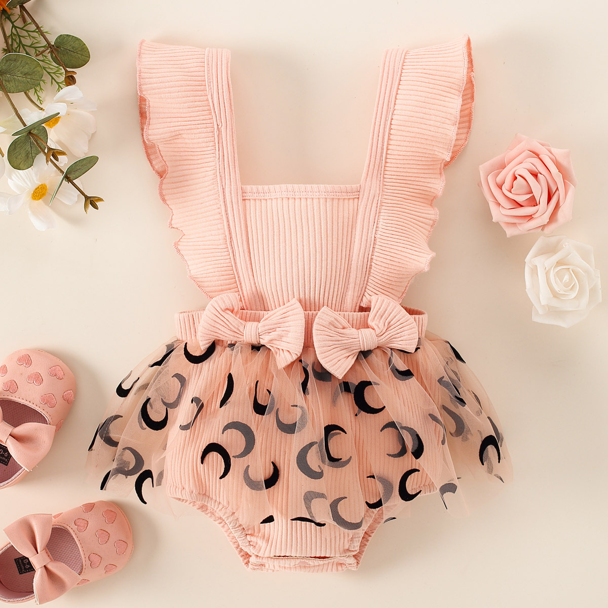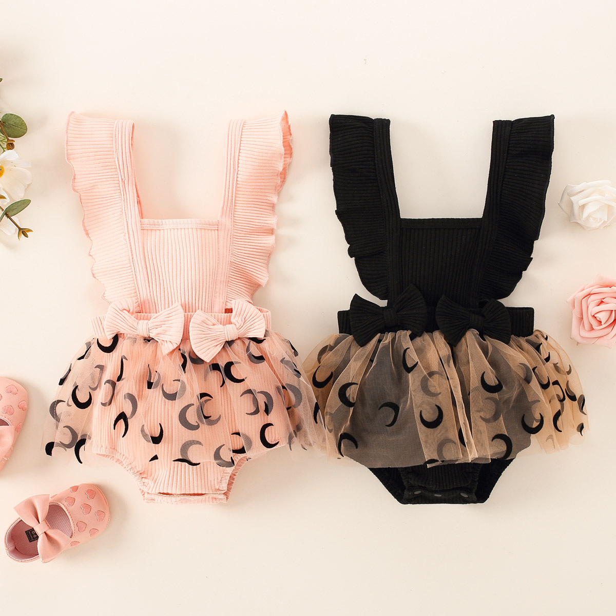 hibobi Girl Baby Moon Bow Sleeveless Mesh Dress Type Bodysuit Wholesale