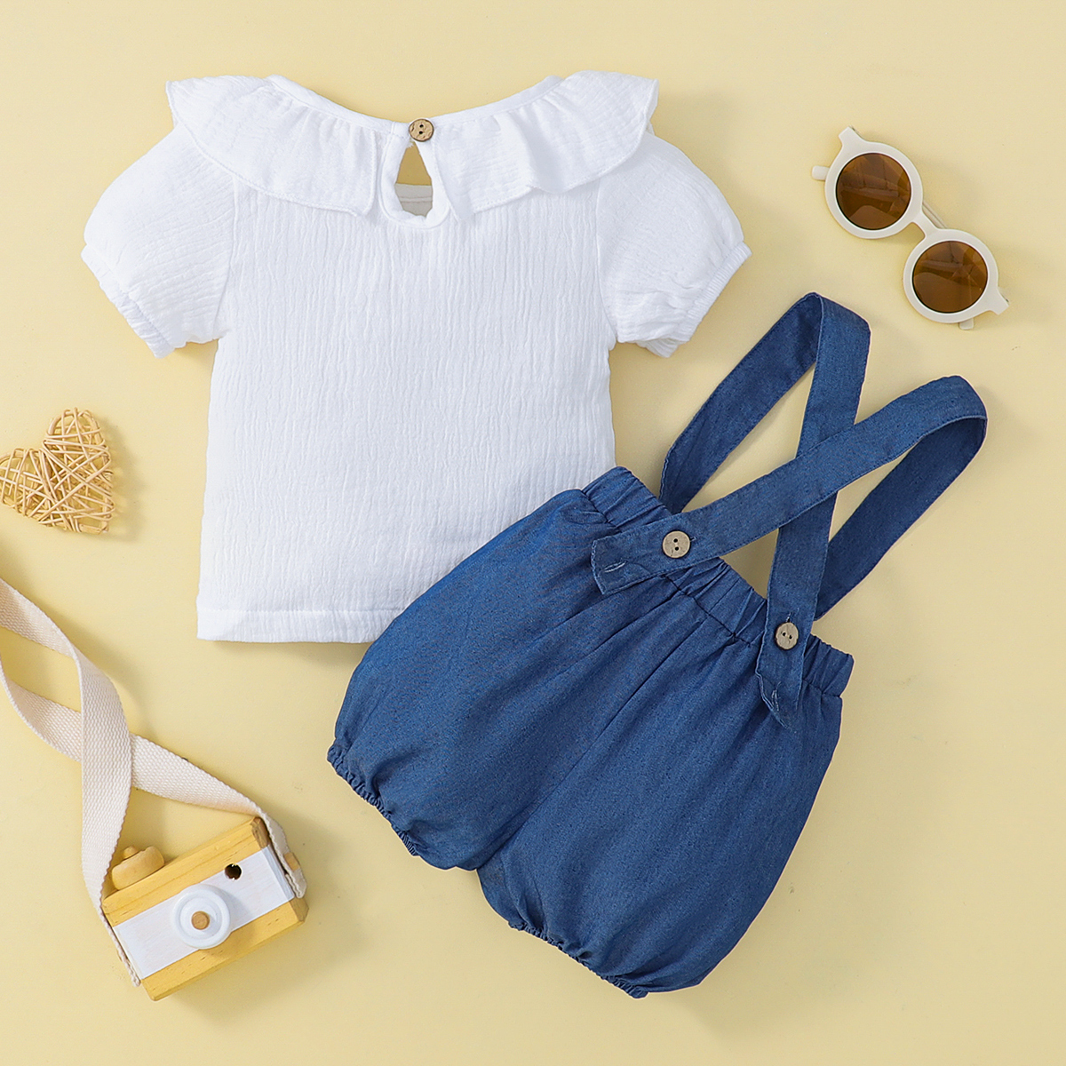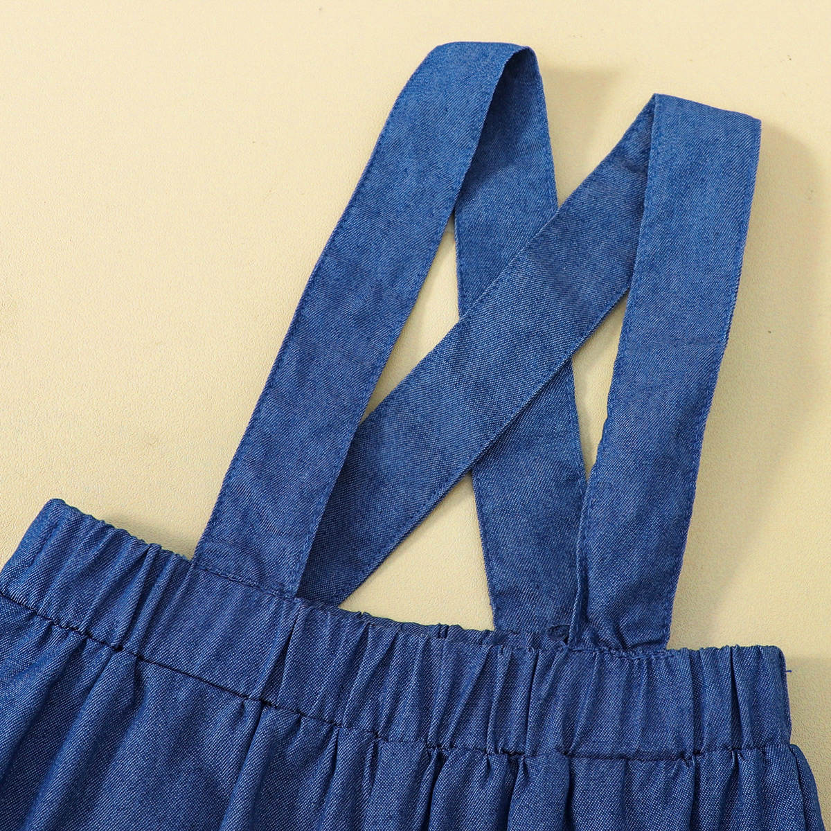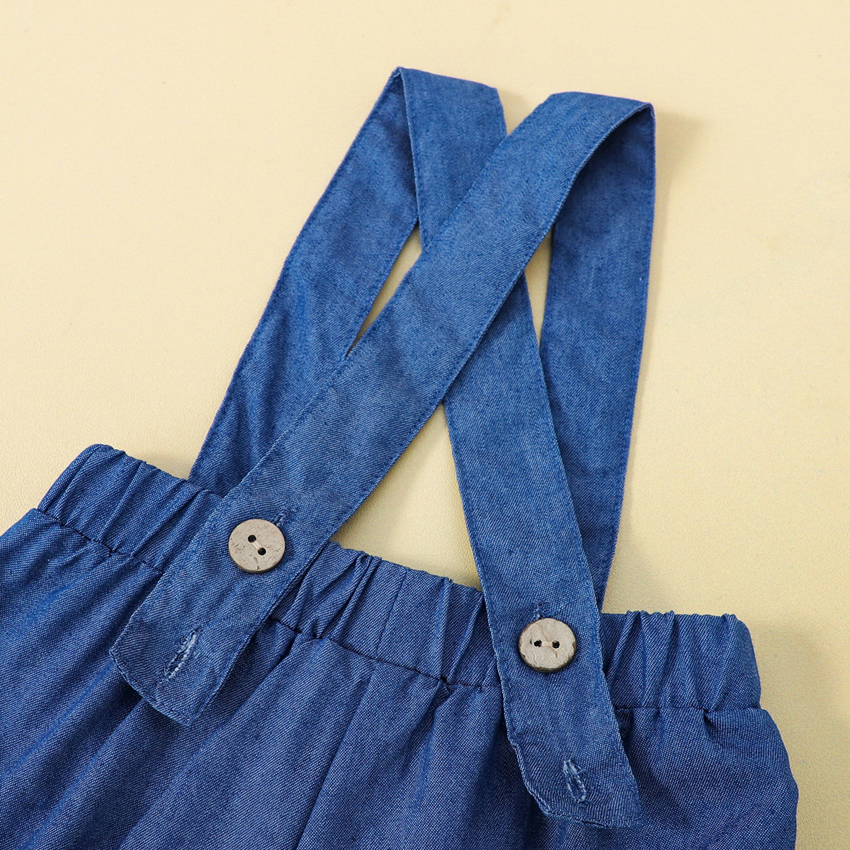hibobi Girl Baby Solid Ruffled Denim Strappy Trousers Set Wholesale