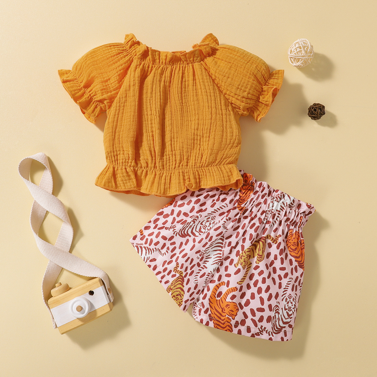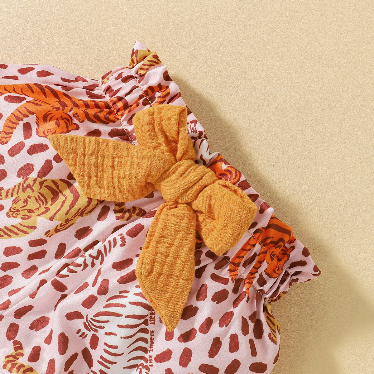hibobi Girl Baby Tiger Printed Shorts Puff Sleeve Set Wholesale