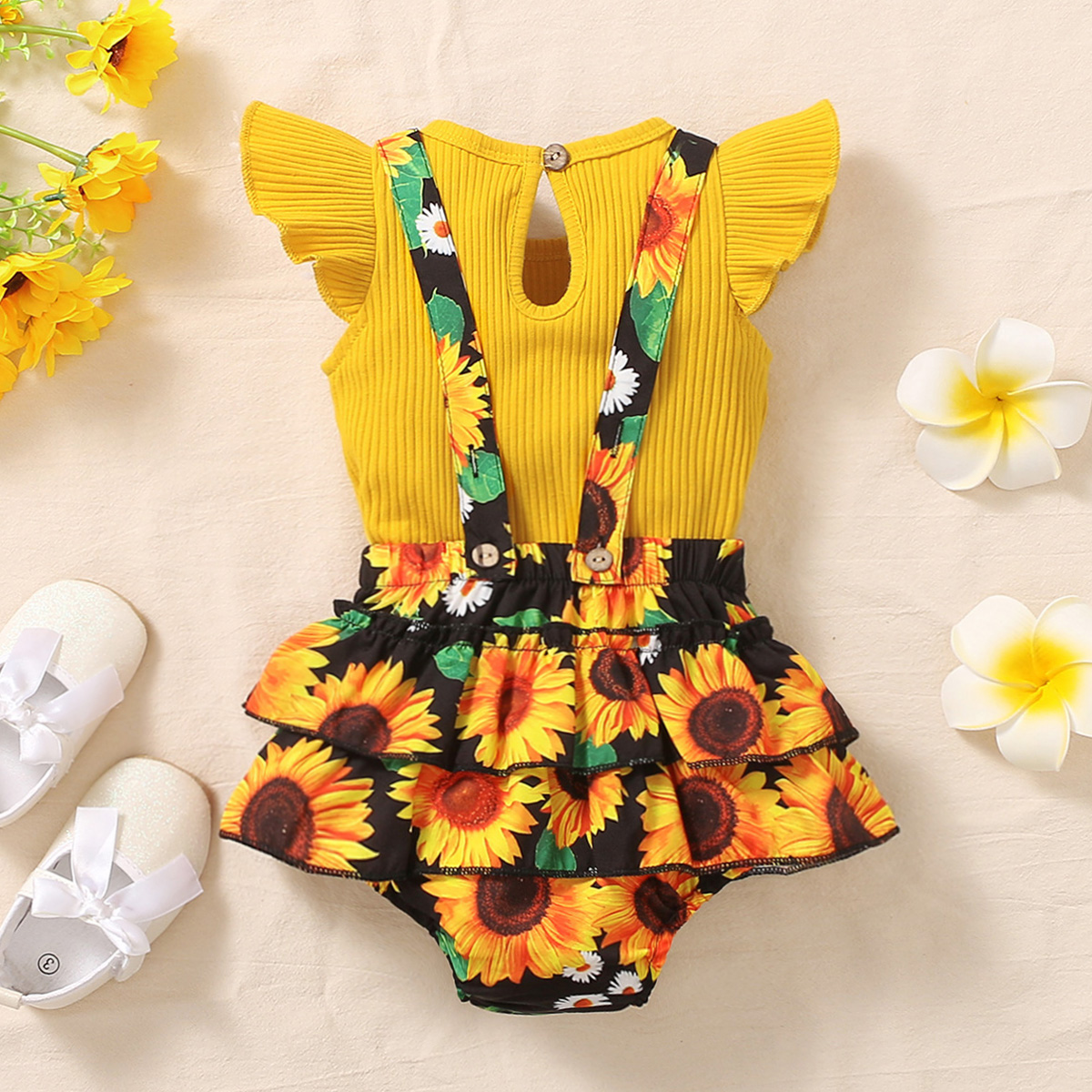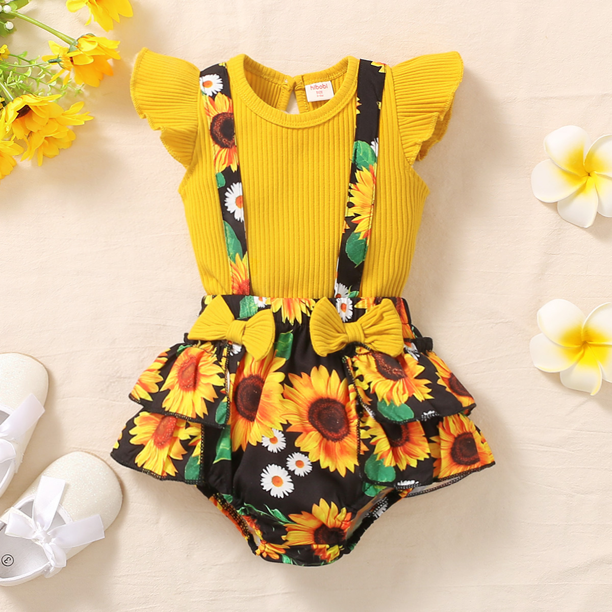 hibobi Girl Sunflower Print Strappy Trousers Set Wholesale