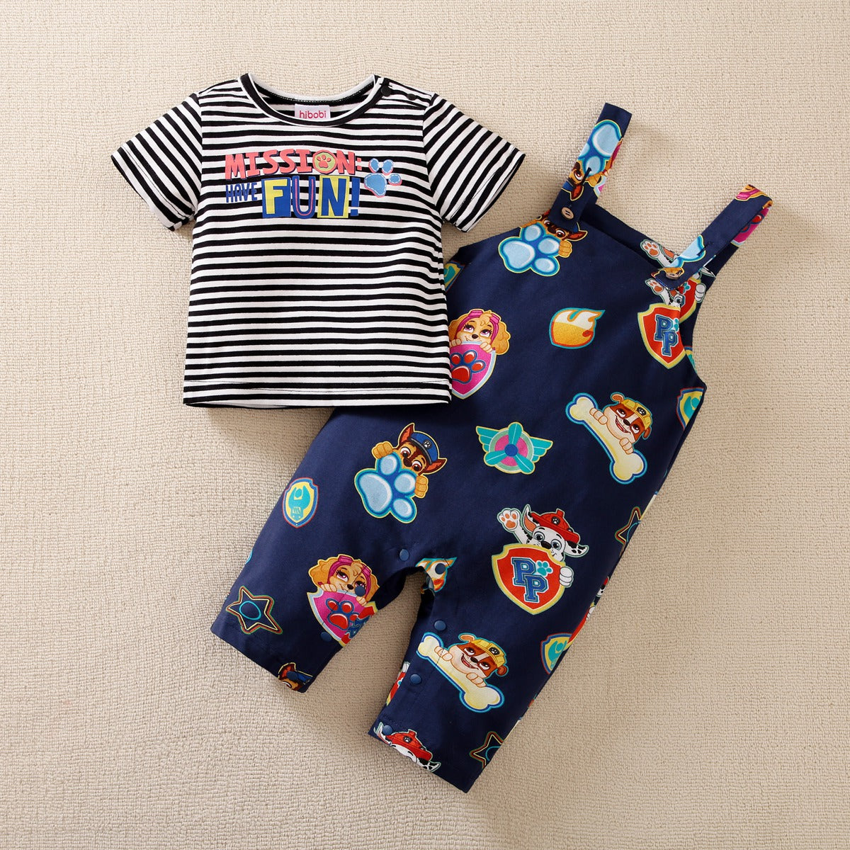 hibobi×PAW Patrol Baby Boy Cartoon Print Stripes Short Sleeve Cotton T-shirt and Suspender Pant Wholesale