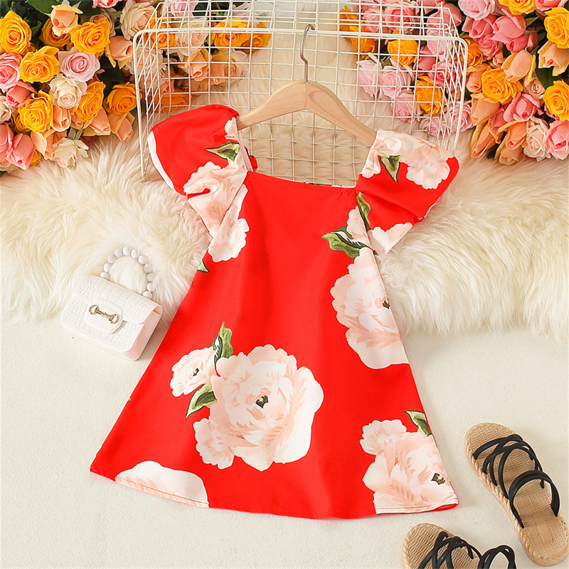 Kid Girl Rose Print Dress Wholesale