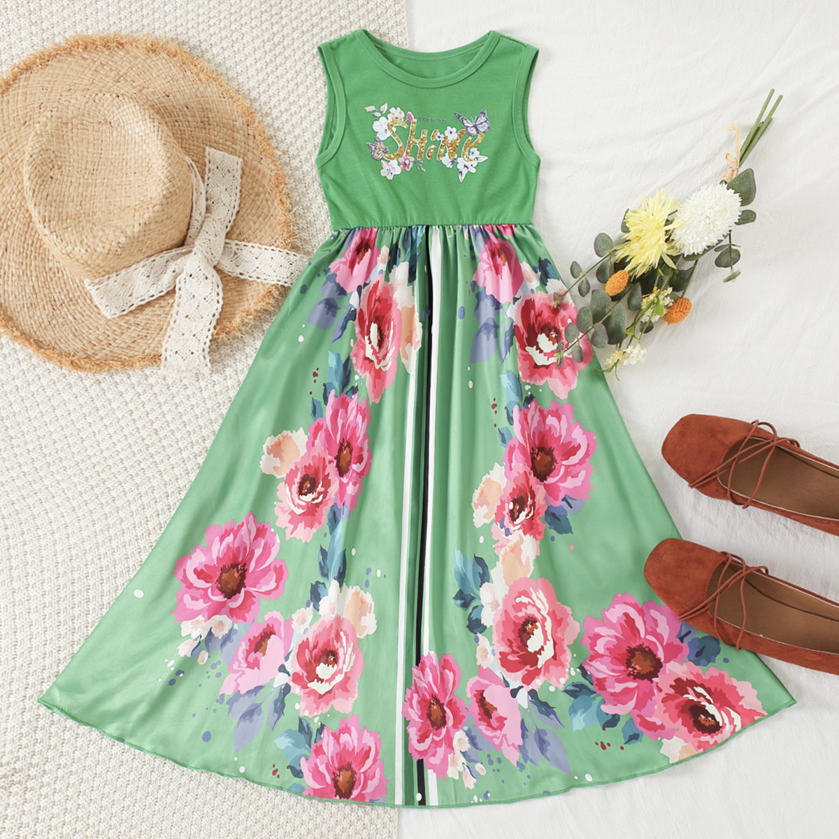 Kid Girl Rose Print Dress Wholesale