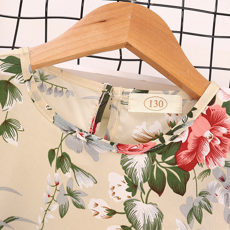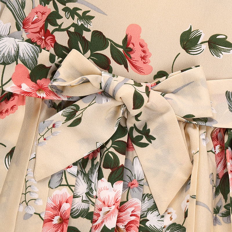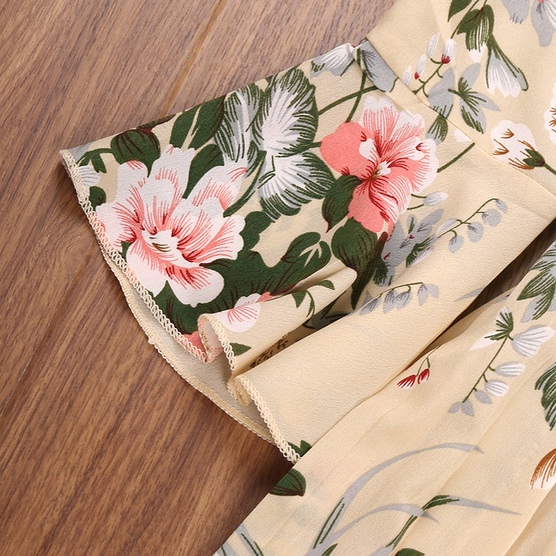 Kids Girls Floral Print Flounce Sleeve Tie Pleated Dress Wholesale