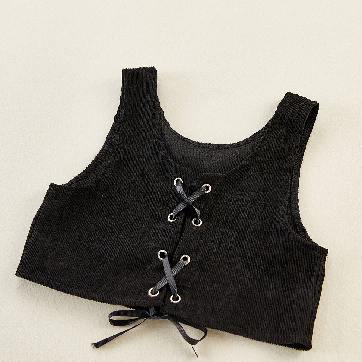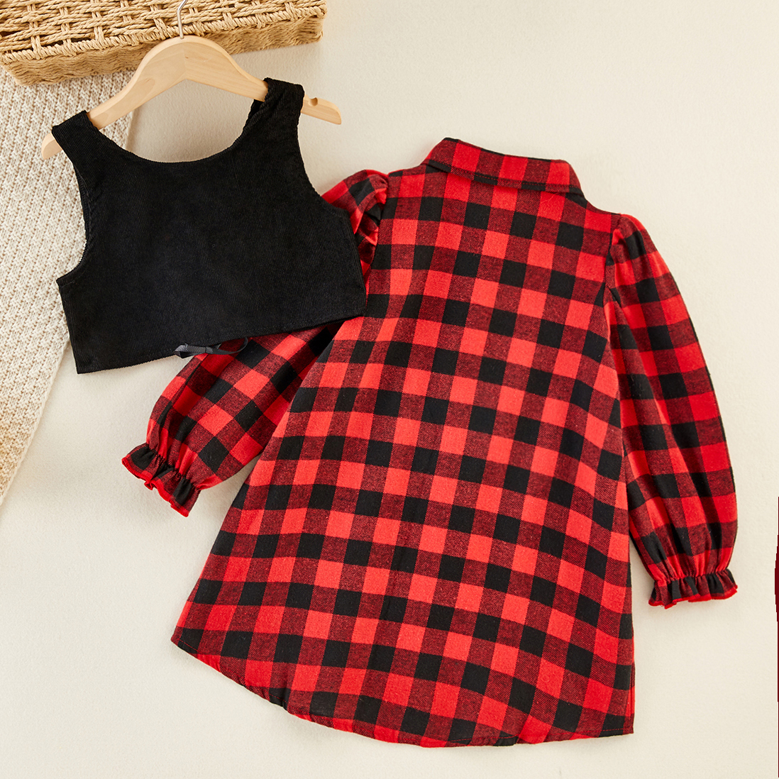 Kids Girls Solid Drawstring Vest & Plaid Print Flounce Sleeve Blouse Wholesale
