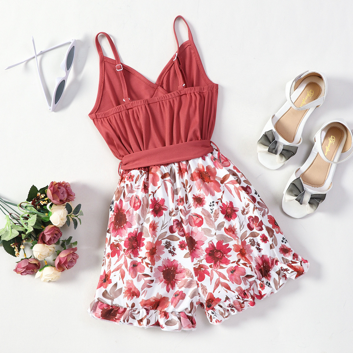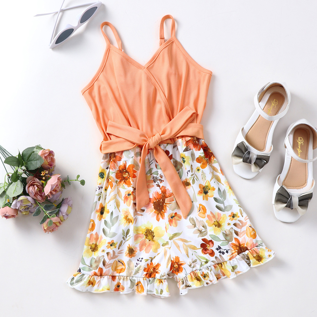 Kids Girls Summer Bsuspender Floral Shorts Wholesale