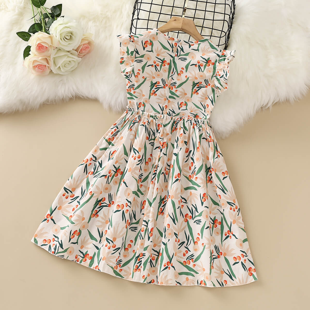 Kids Girls Summer Flora Print Petal Sleeve Dress Wholesale