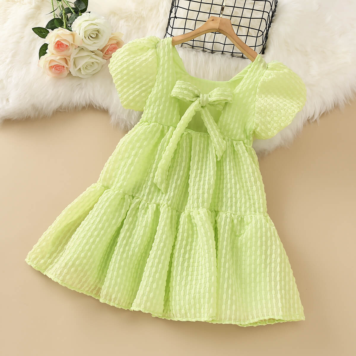 Kids Girls Summer Net color Puff Sleeve Princess Dress Wholesale