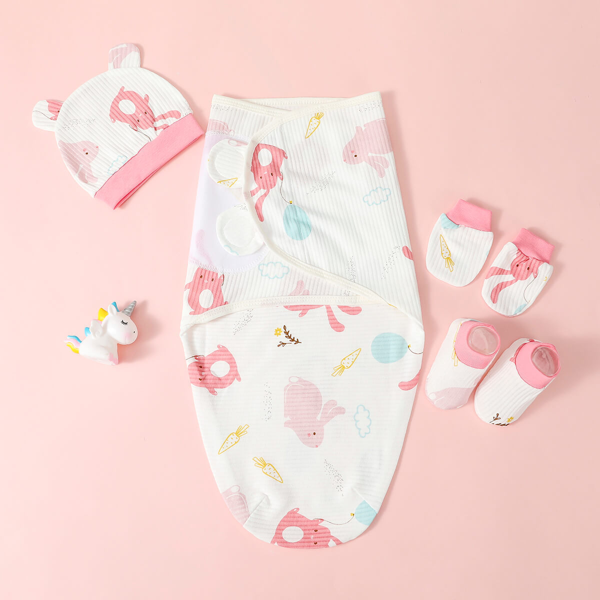 Newborn swaddle baby silkworm sleeping bag baby hat baby gloves baby foot set four pieces Wholesale