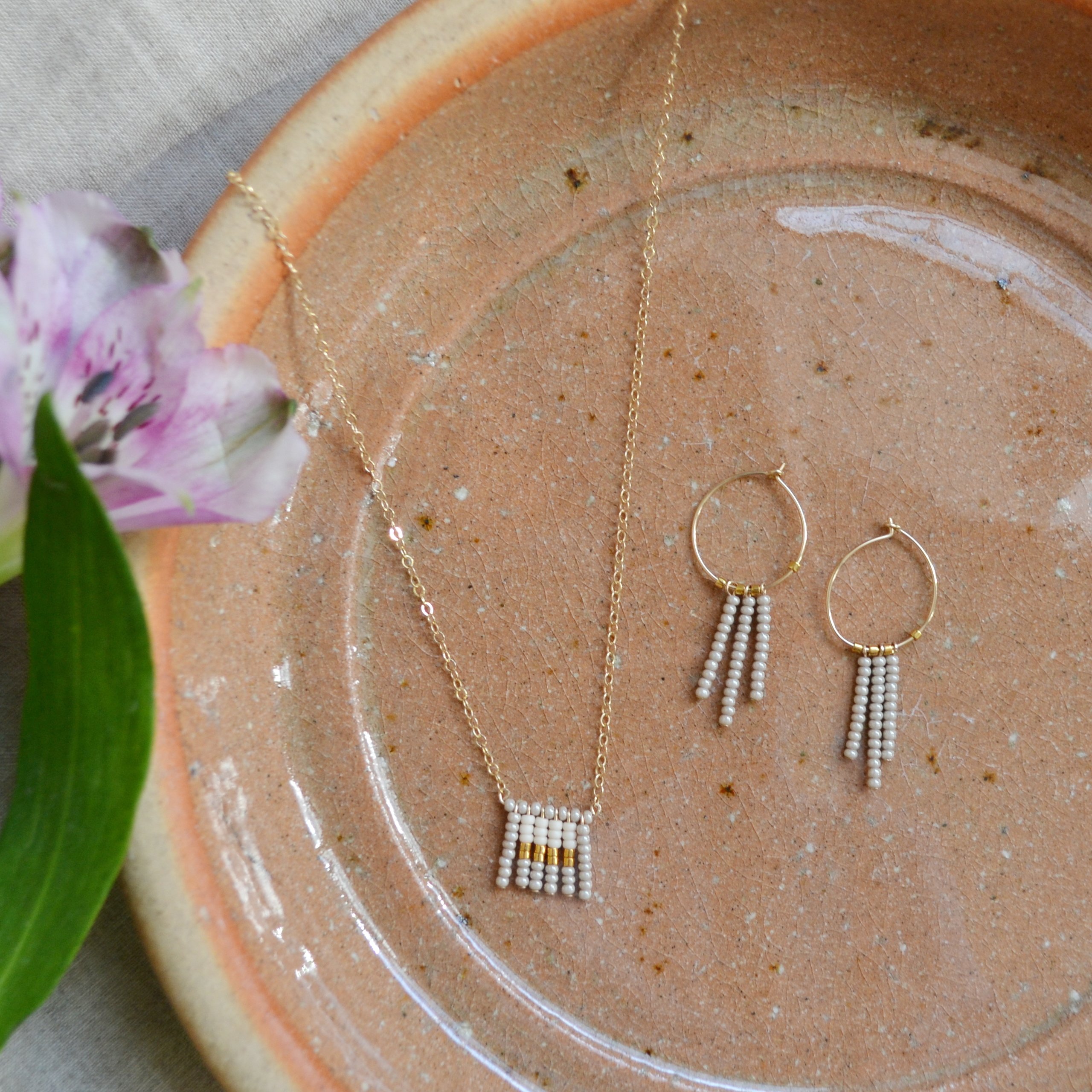 • For the woman who wants to dip her toe into chic beaded jewelry, the Nzuri Tassel Block Necklace is the perfect place to start. Hand-beaded in Tanzania by artisan women, these simple and delicate pieces combine traditional beading with modern design. Take your pick of black or taupe - with 14k gold beads and chain. Can't choose? Treat yourself to both!