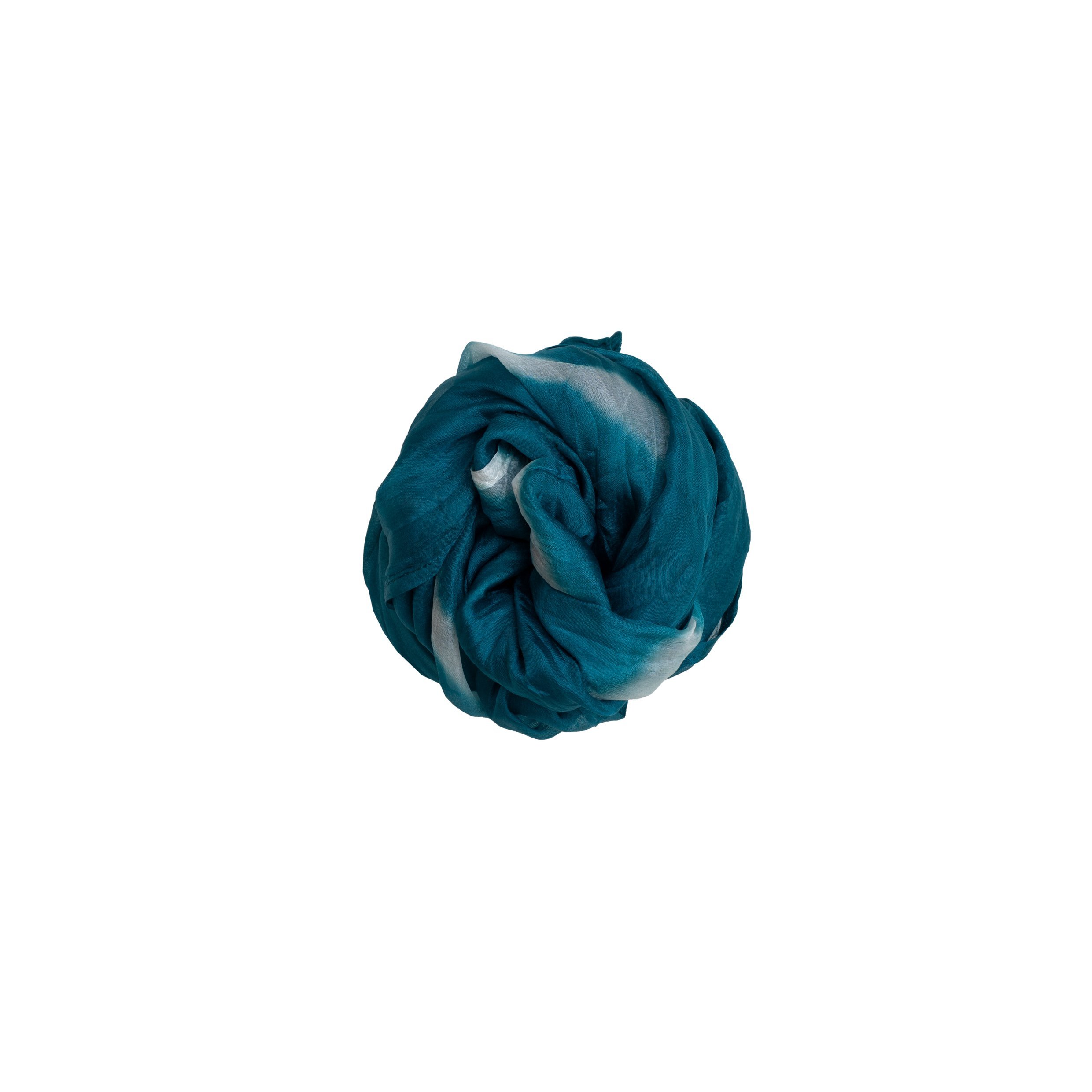 • This beautifully_bold and silky_soft scarf is_rich with texture and soul. This_Teal Dyed Silk Scarf is made from the softest Cambodian silk and crafted by master artisans. Available in three luxurious hues, this sea-green, turquoise and peacock lightweight scarf, can be wrapped around your neck, draped over your shoulders, or knotted around your head as a headband to complement your look.