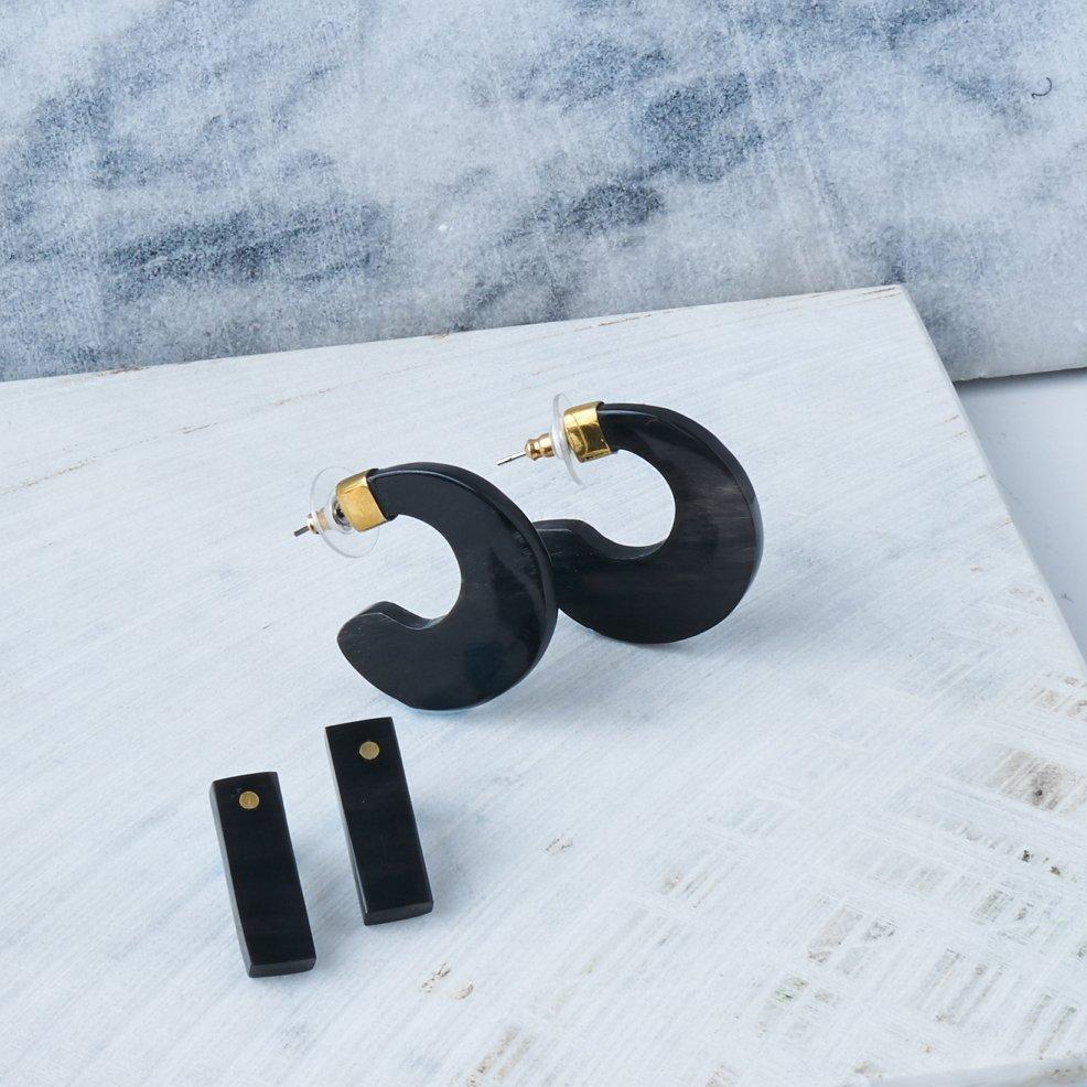 • Add a chic element to any look with these_sleek and sophisticated_rectangle horn studs, while empowering deaf artisans in Kenya.