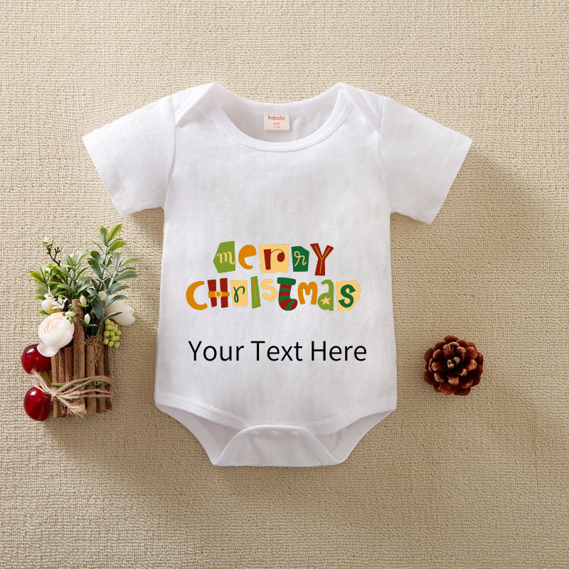 Solid Color Short-sleeved Triangle Jumpsuit for Baby wholesale Christmas Image Text