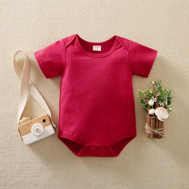 Solid Color Short-sleeved Triangle Jumpsuit for Baby wholesale Text Photo