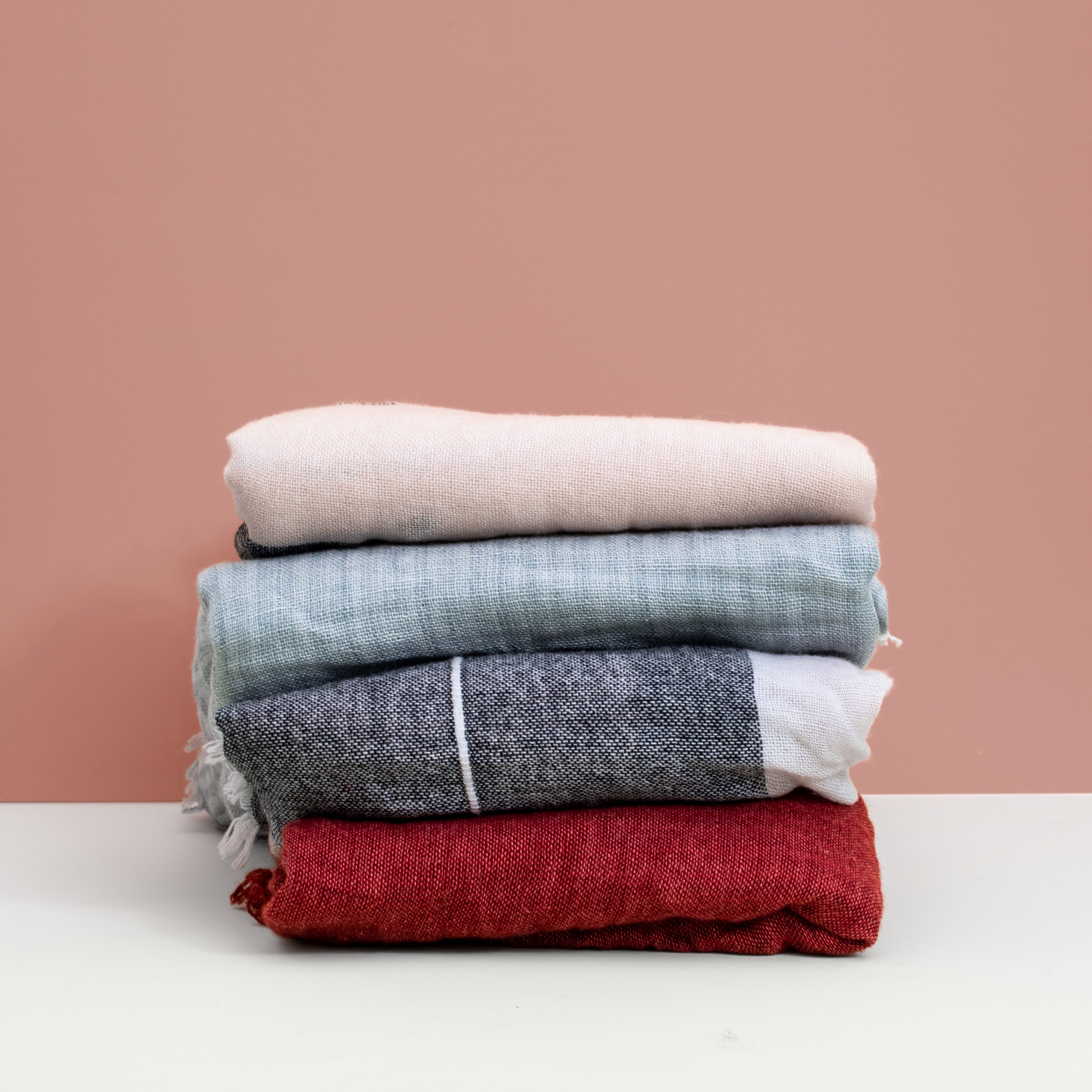 • The simple and softest winter scarf is right here. Handwoven with a cotton and Merino wool blend by women artisans in Nepal, every purchase continues sustainable employment and community development. Choose from a beautiful Teal with duck egg blue tones, or a deep_ Burgundy rust, or treat yourself to both.