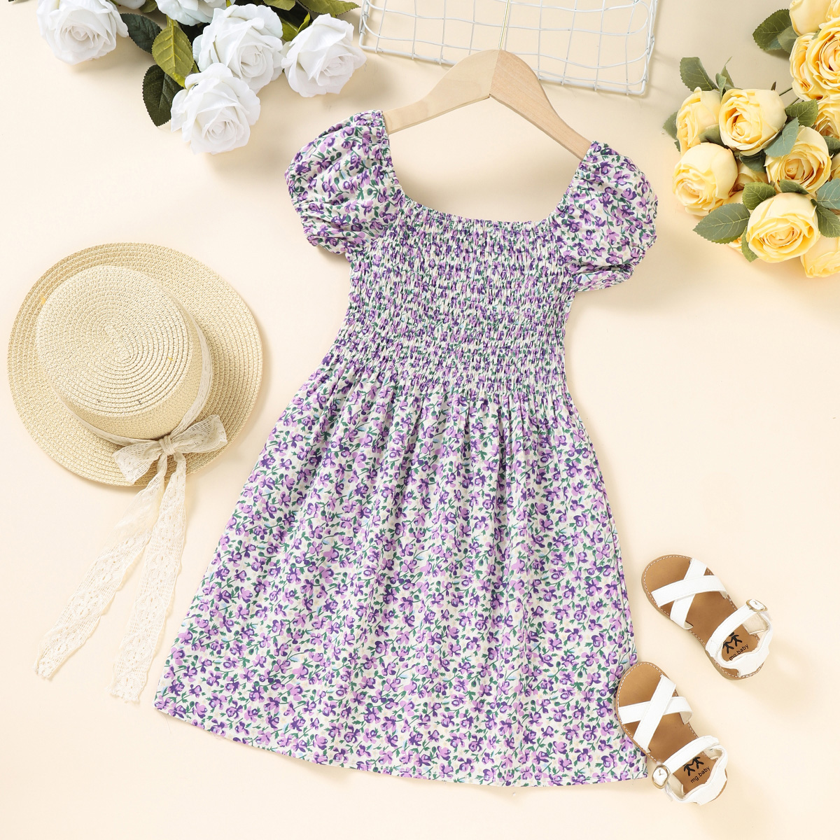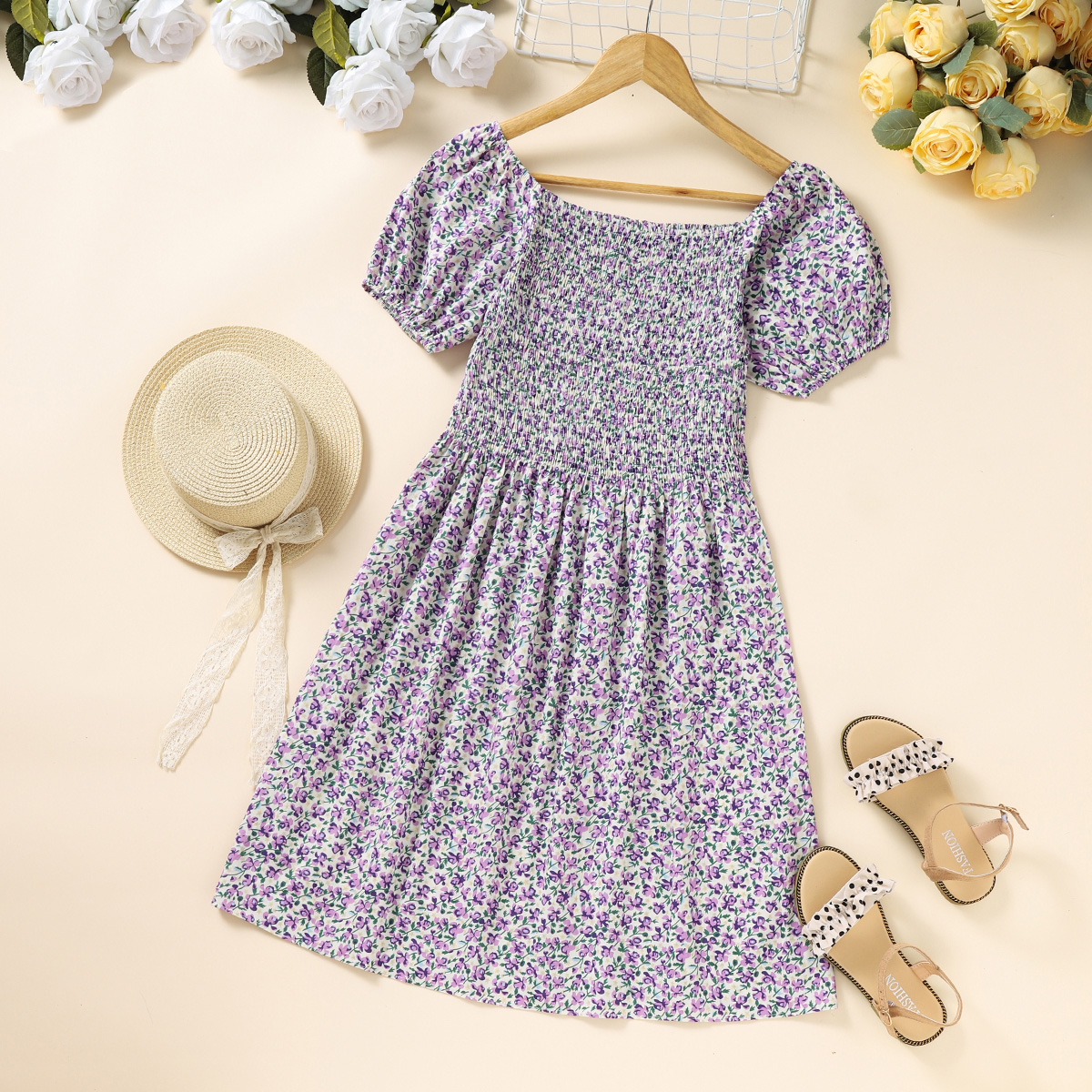 Sweet Floral Print Puff Sleeve Dress for Mom and Me Wholesale