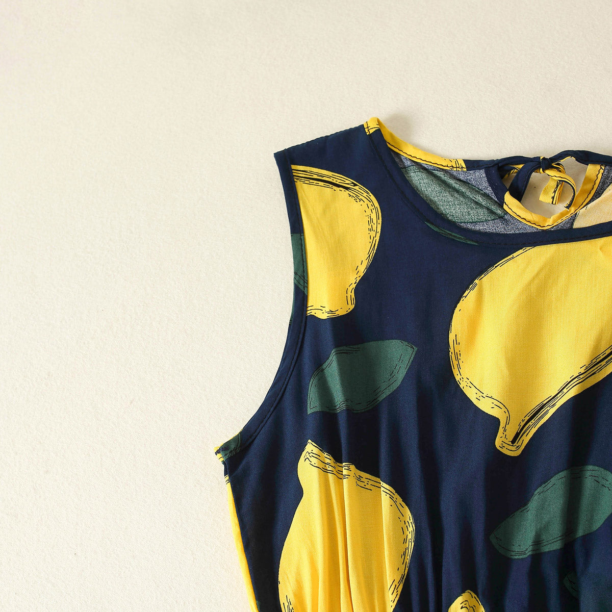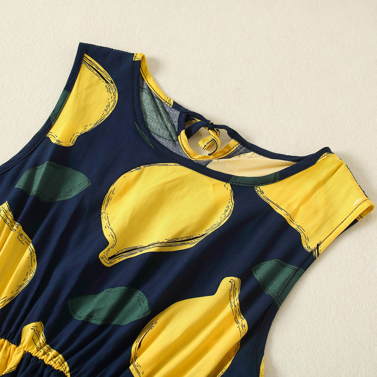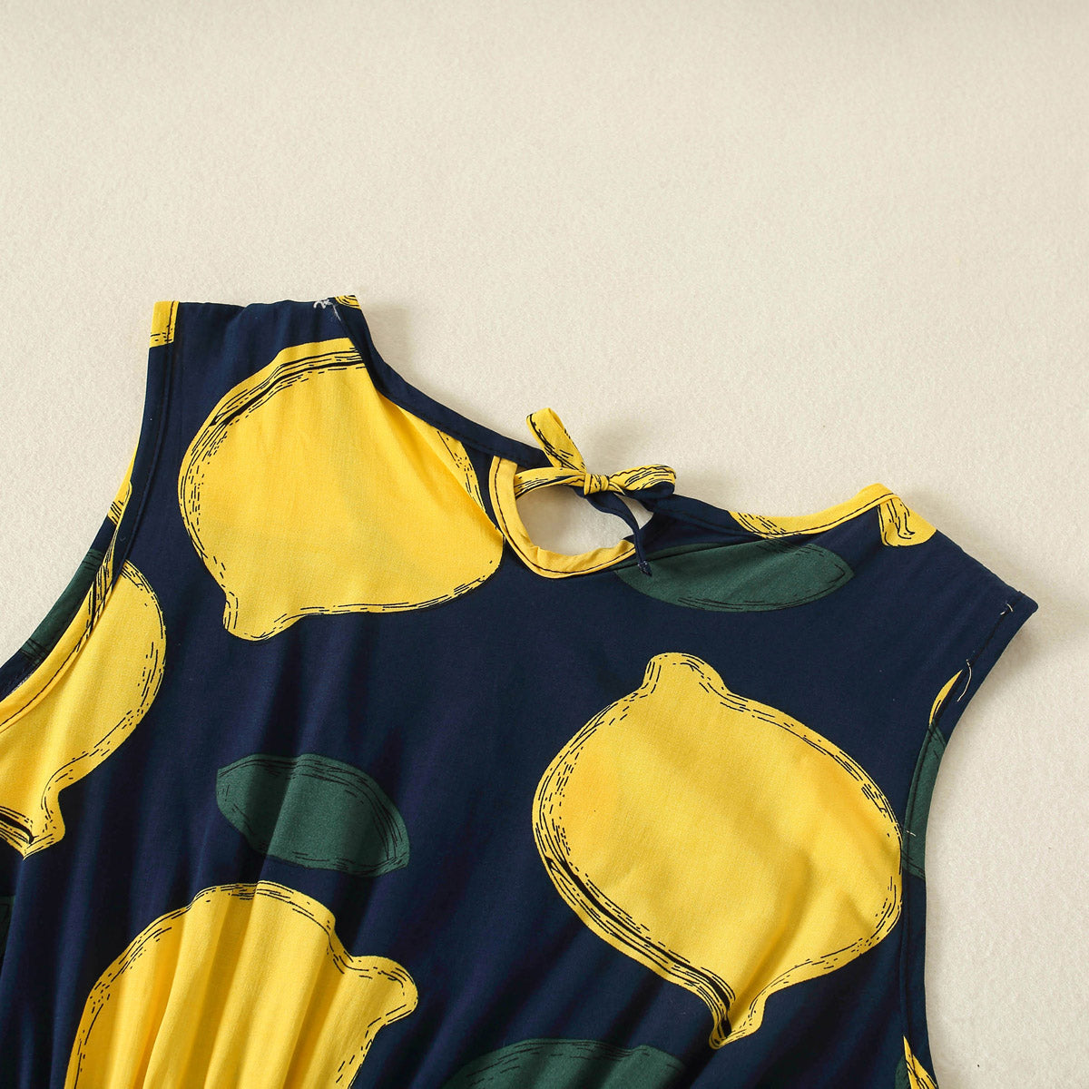 Sweet Lemon Print Sleeveless Long Dress for Mom and Me Wholesale