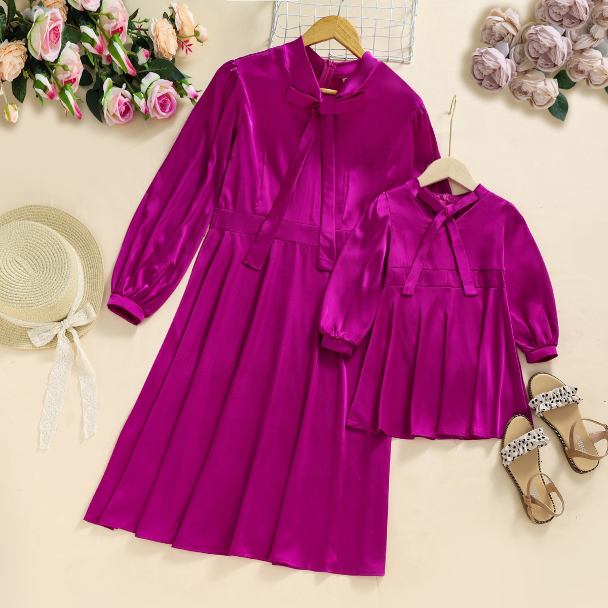 Sweet Solid Color Long Sleeve Dress for Mom and Me Wholesale