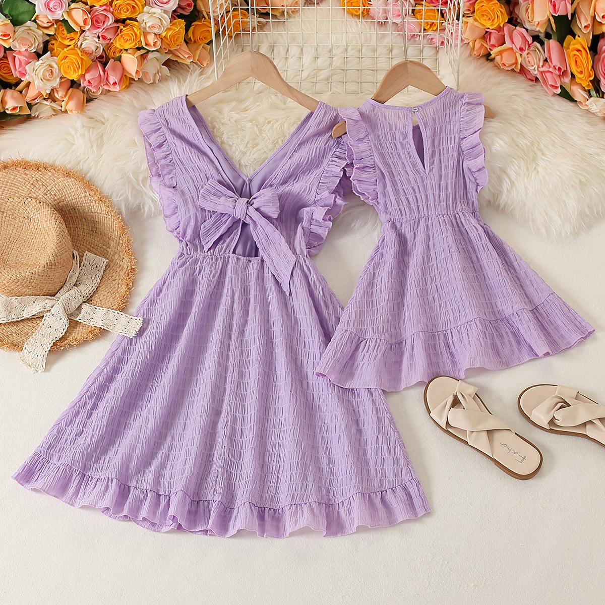 Sweet Solid Color Sleeveless Dress for Mom and Me Wholesale