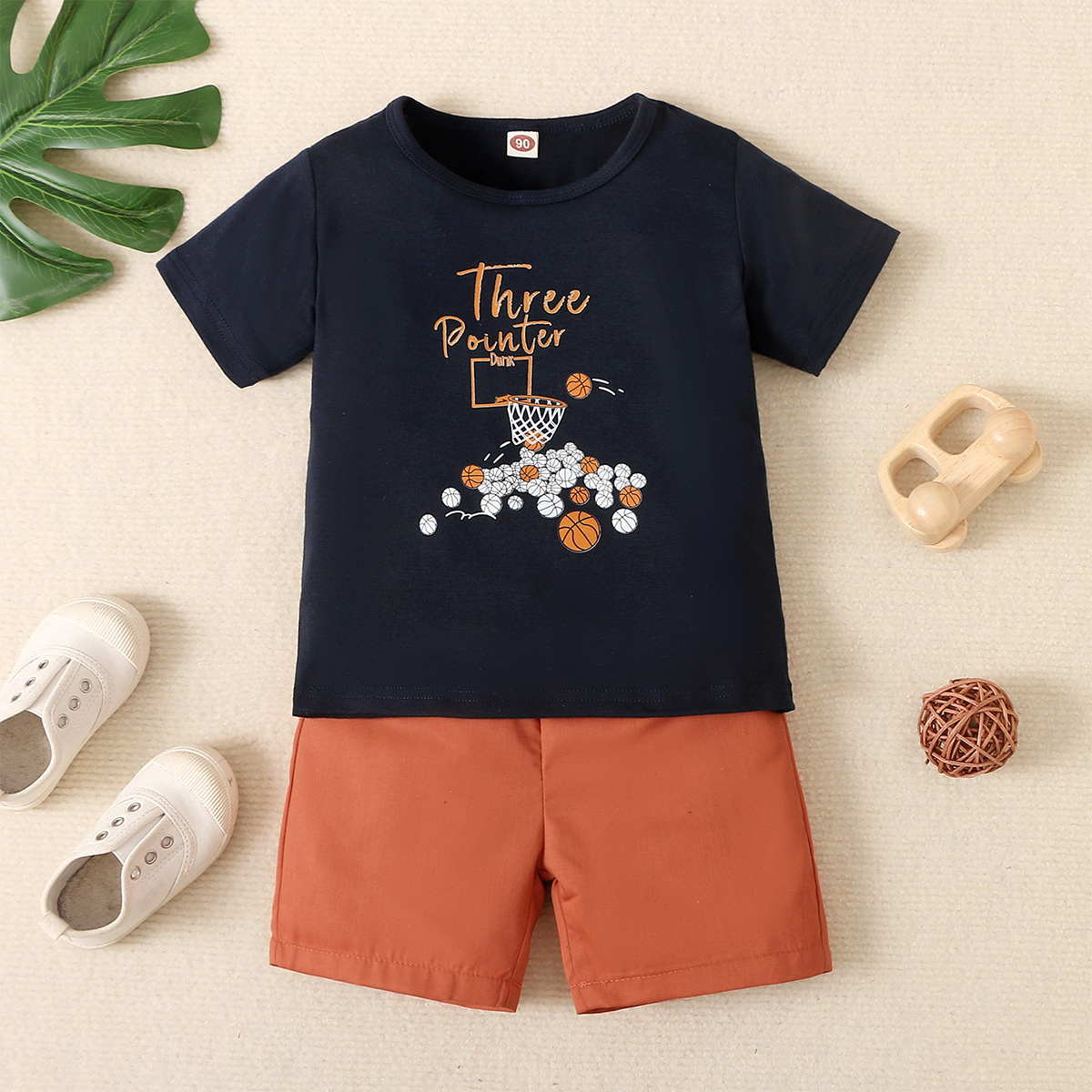 Toddler Boy Cotton Cartoon Basketball Top & Shorts Wholesale