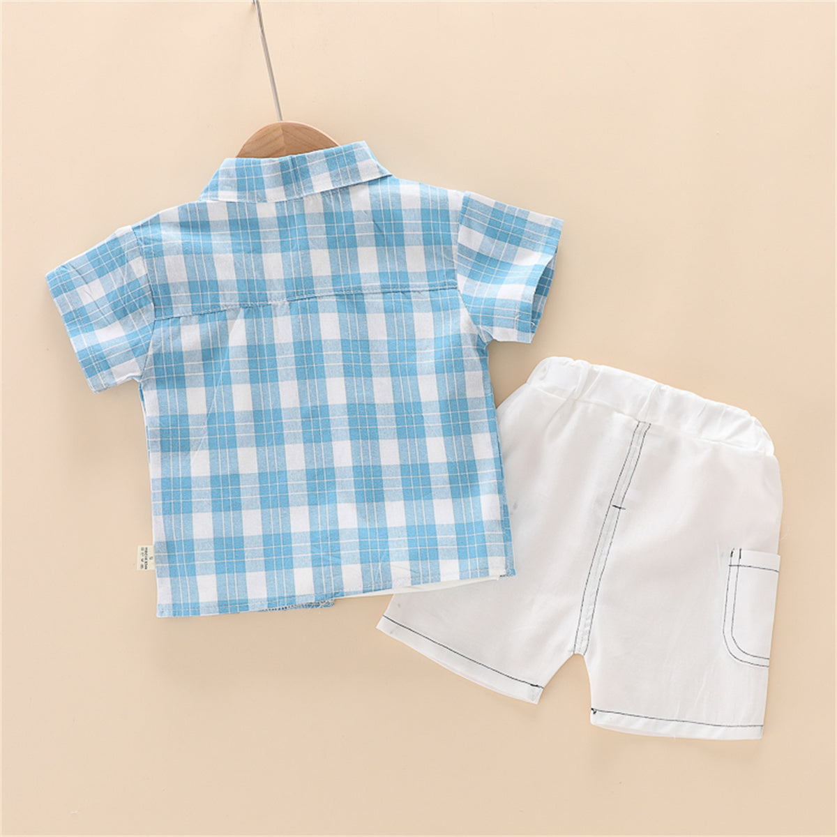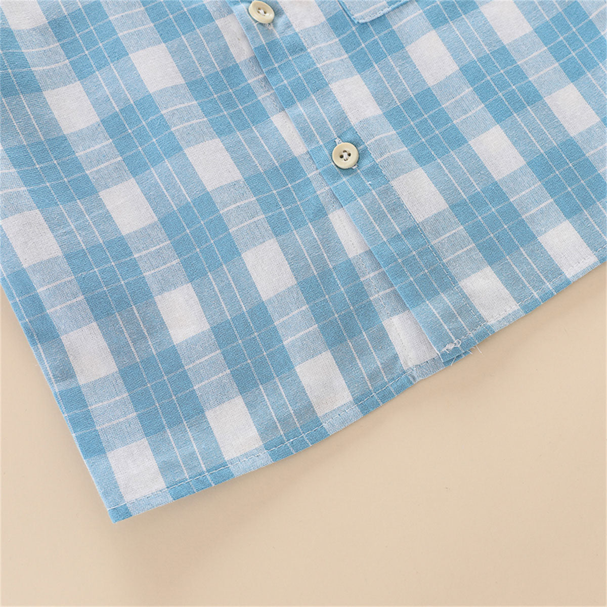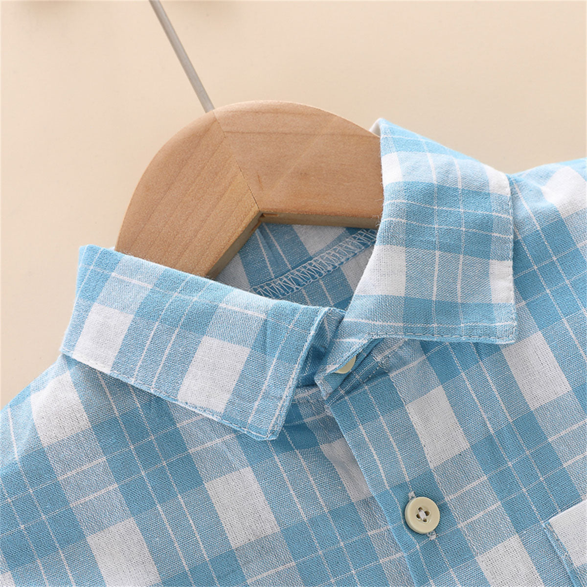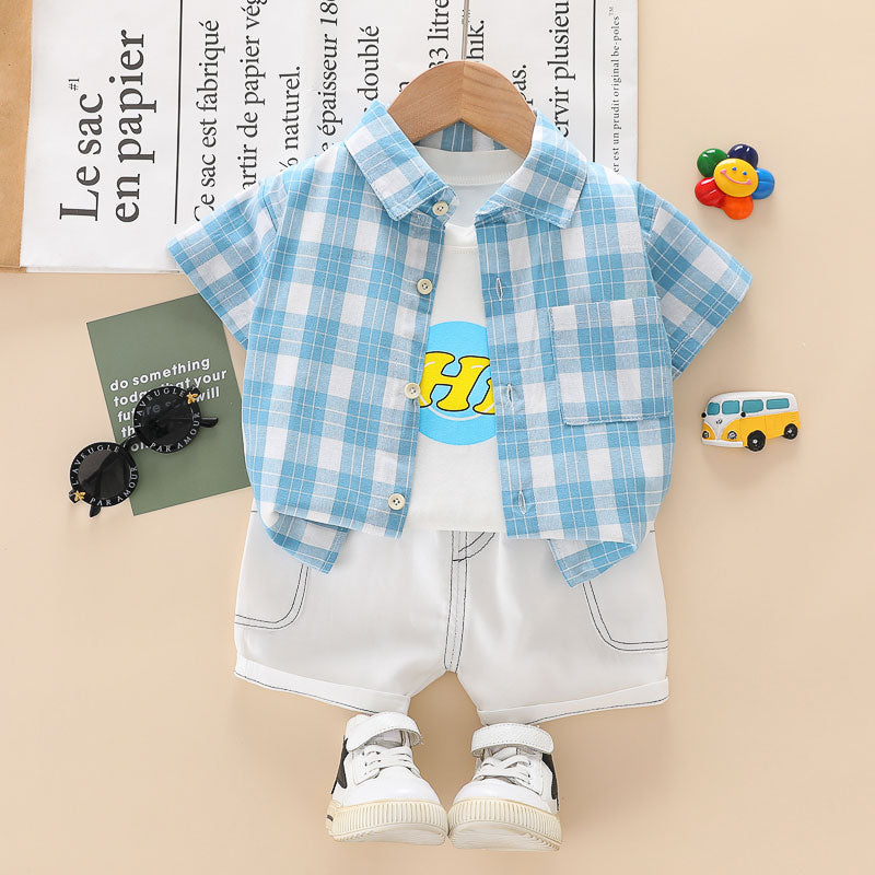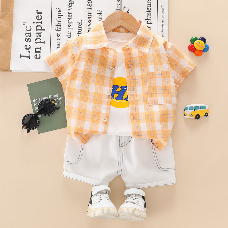 Toddler Boy Letter Pattern Vest & Plaid Shirt & Shorts Wholesale