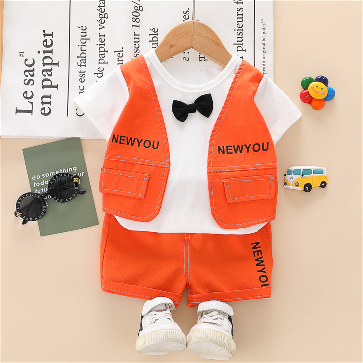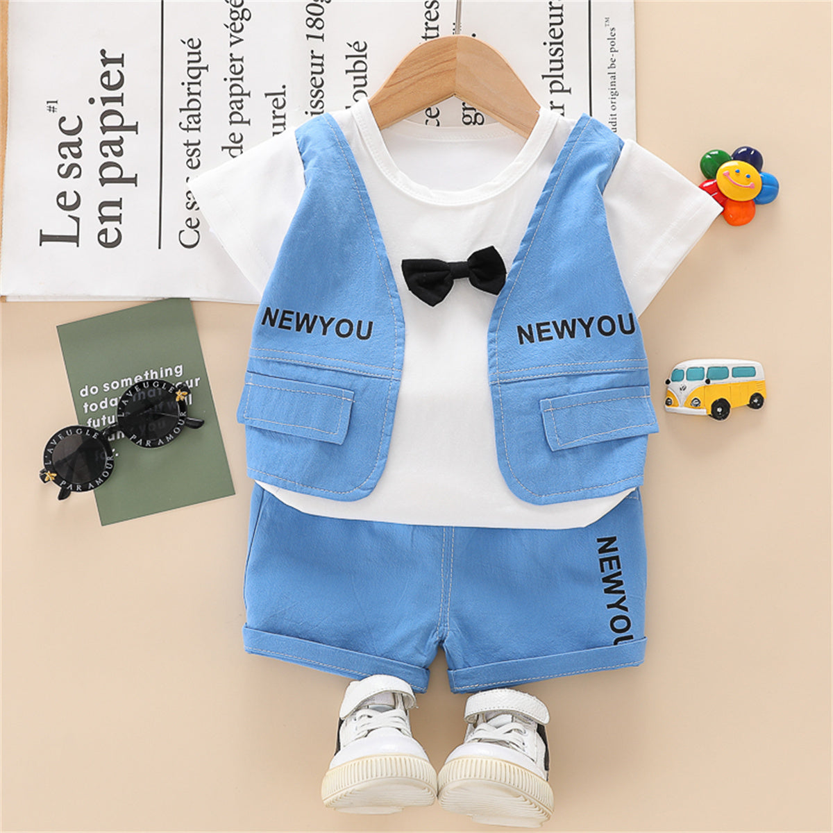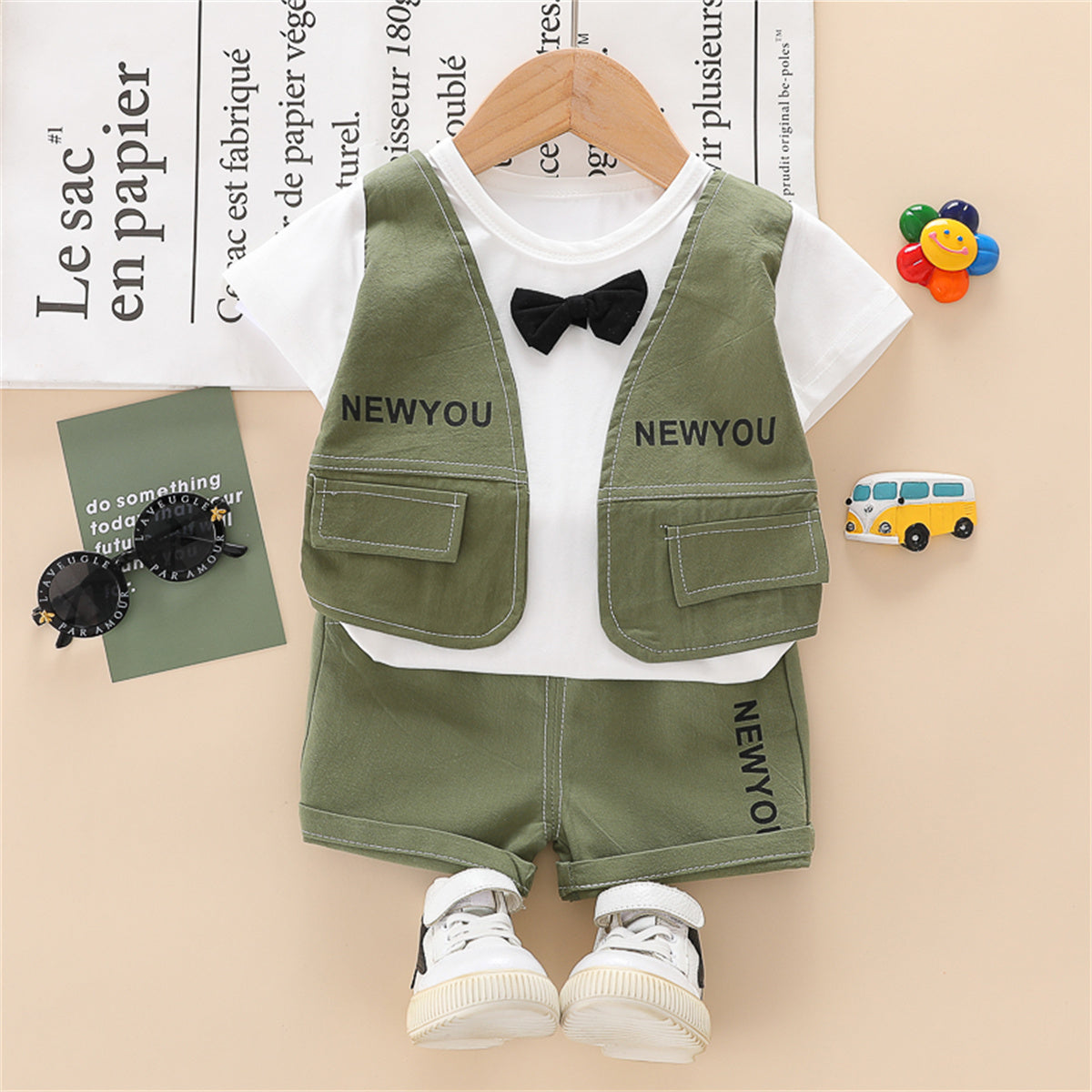 Toddler Boy Mock Two-Piece Letter Patterns Top & Shorts Wholesale