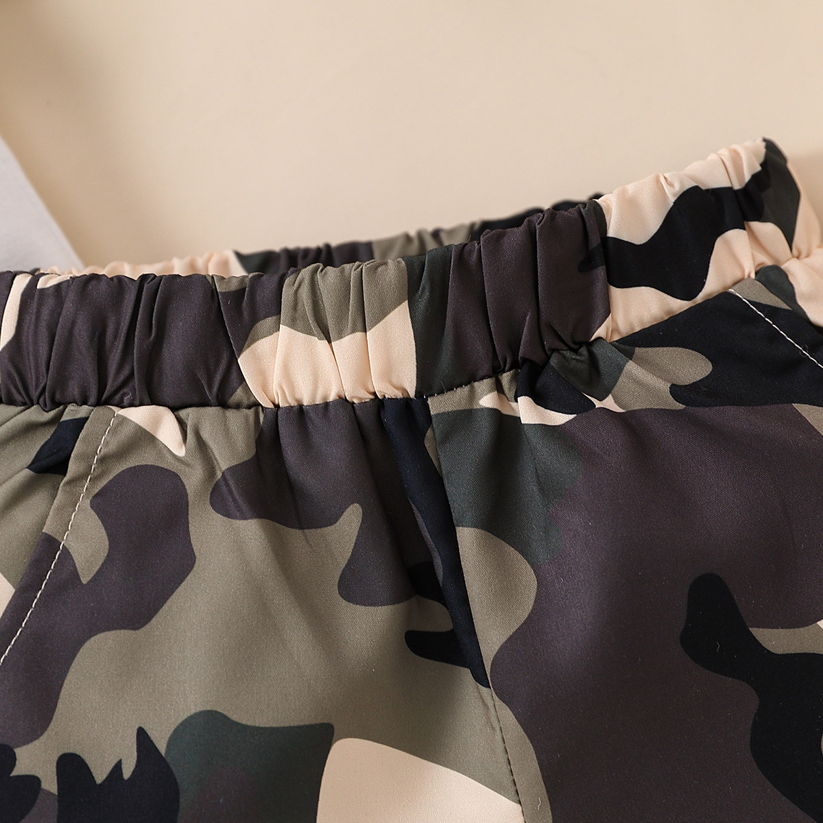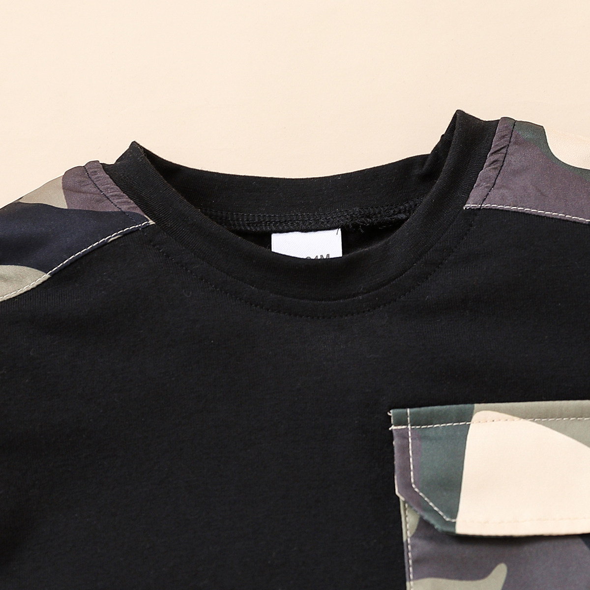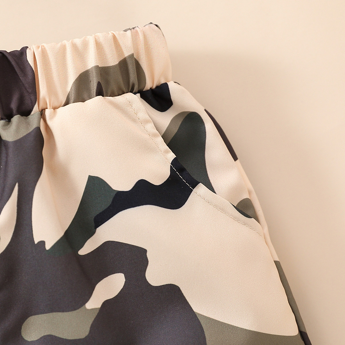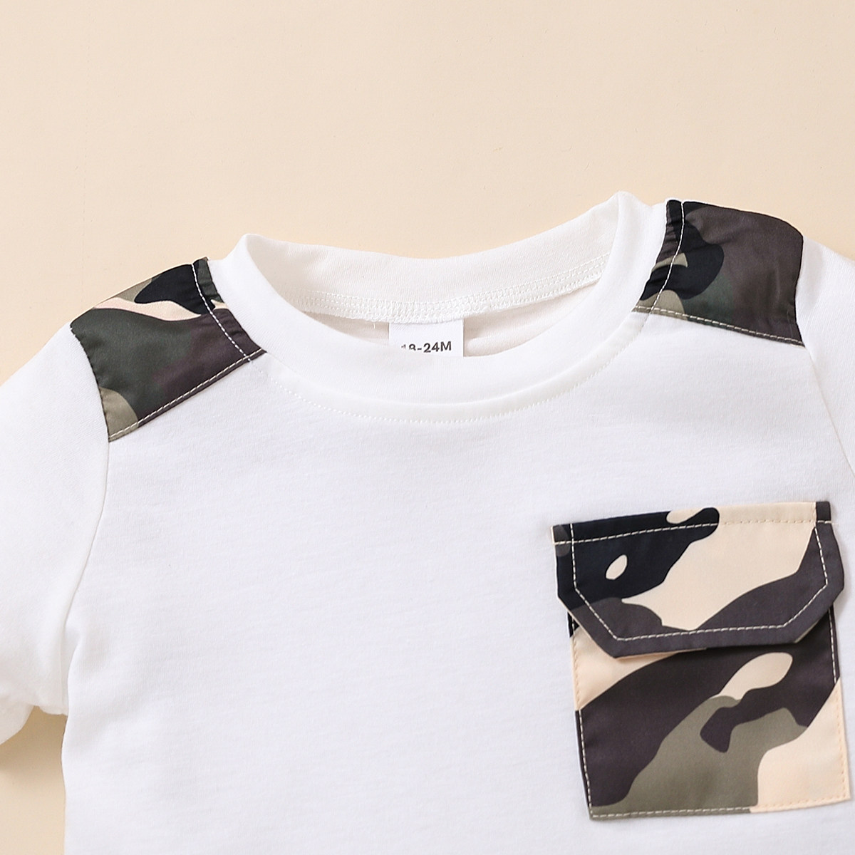 Toddler Boy Round Neck Camouflage Patchwork Print Pocket Top & Shorts Wholesale