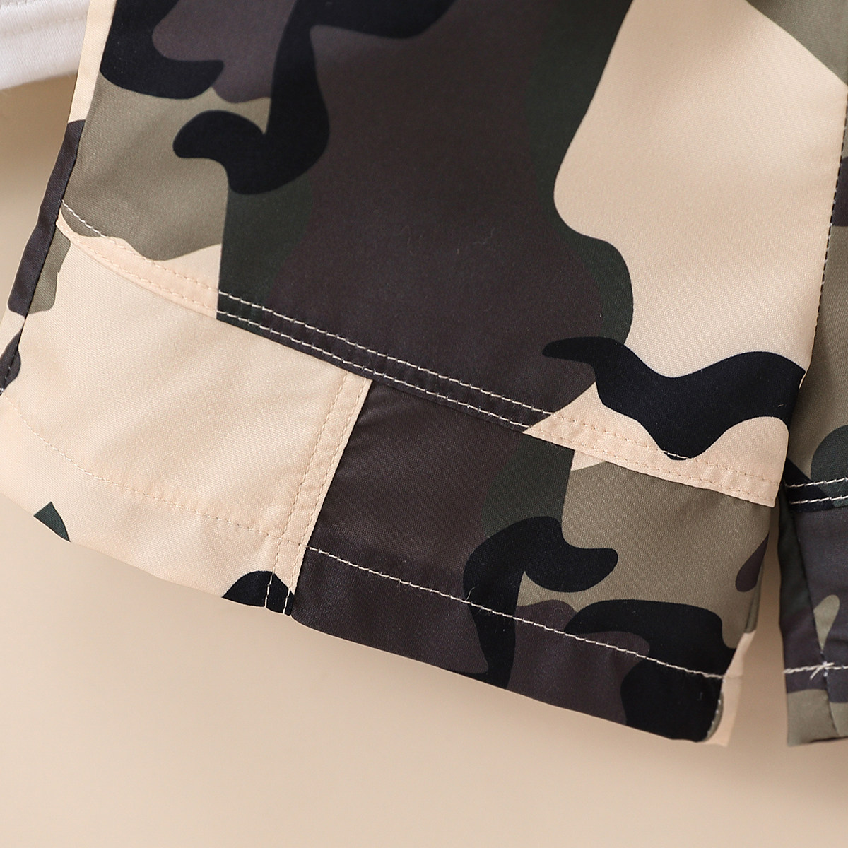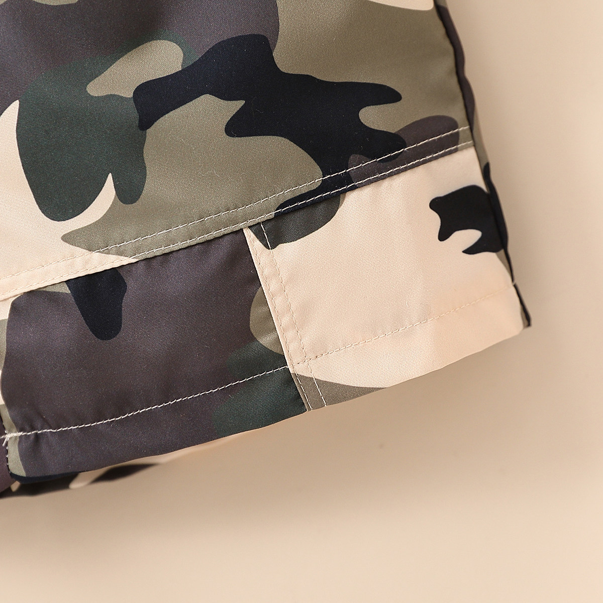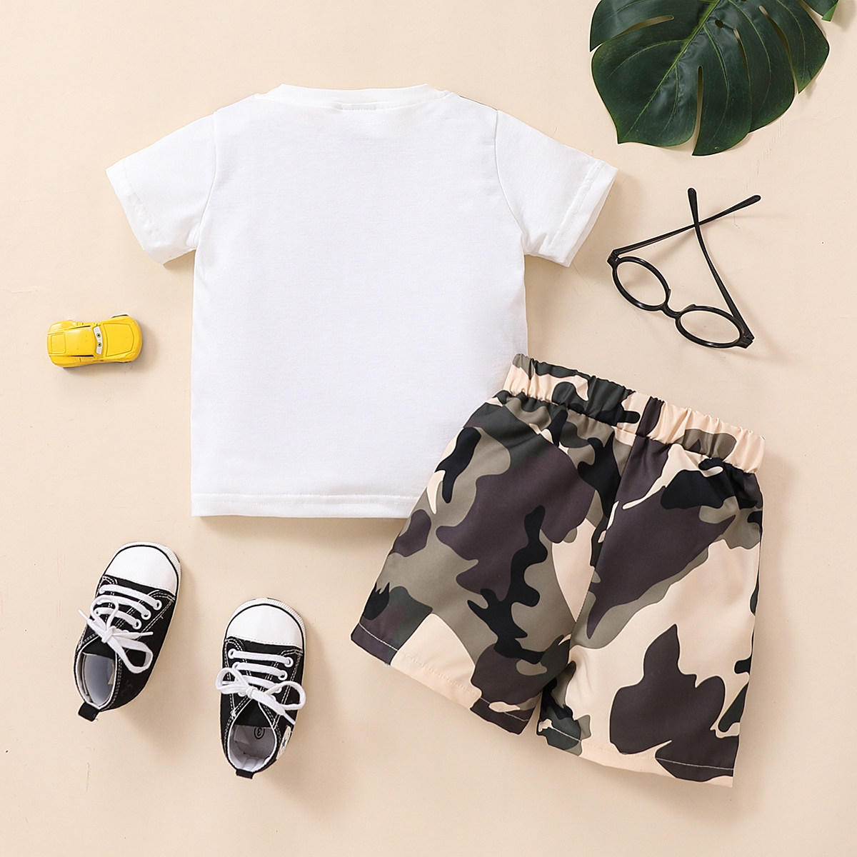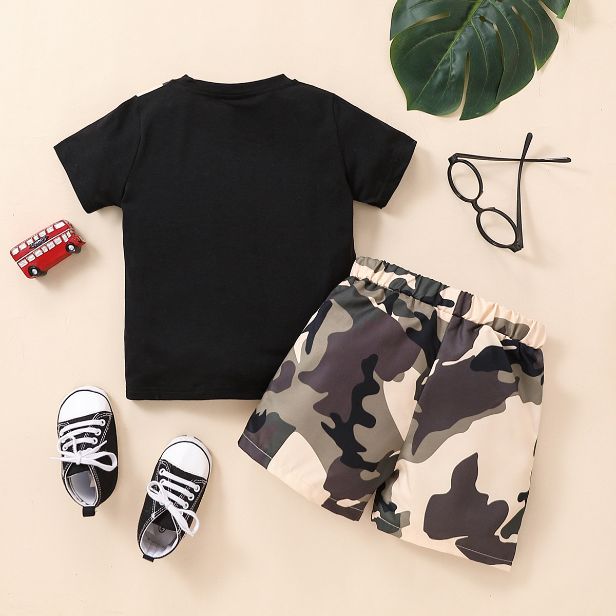 Toddler Boy Round Neck Camouflage Patchwork Print Pocket Top & Shorts Wholesale