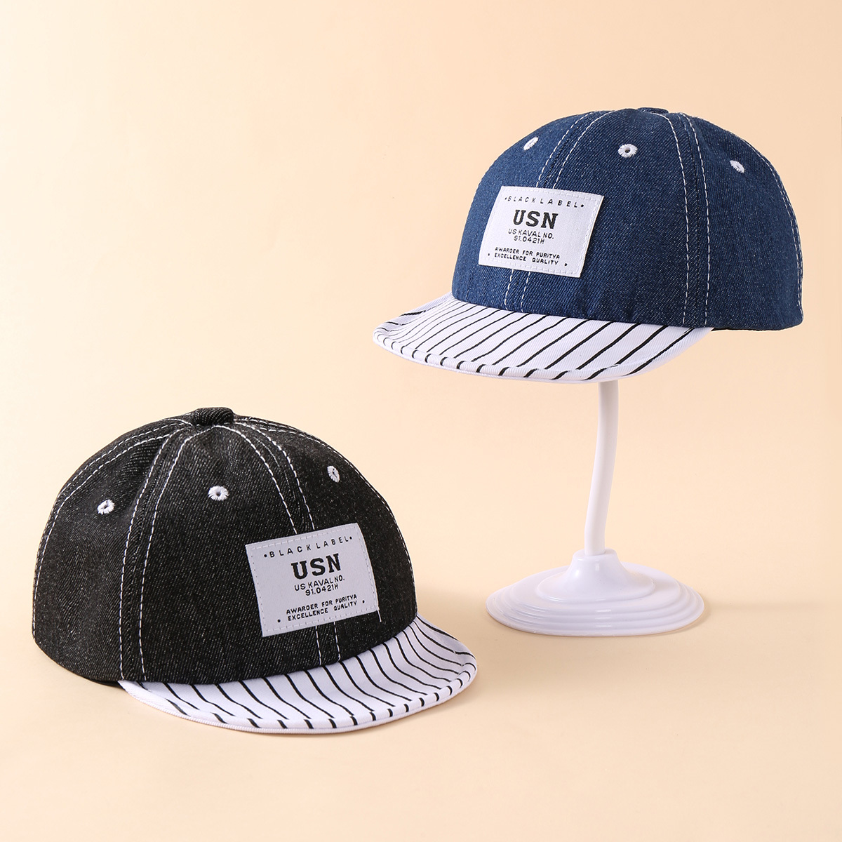 Toddler Color Block Striped Letters Duckbill Cap Wholesale
