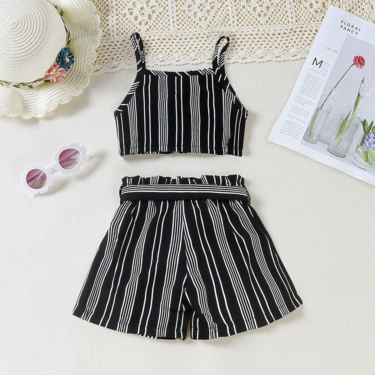 Toddler Girl Casual Eleguard Striped Vest Top & Shorts & Belt Wholesale