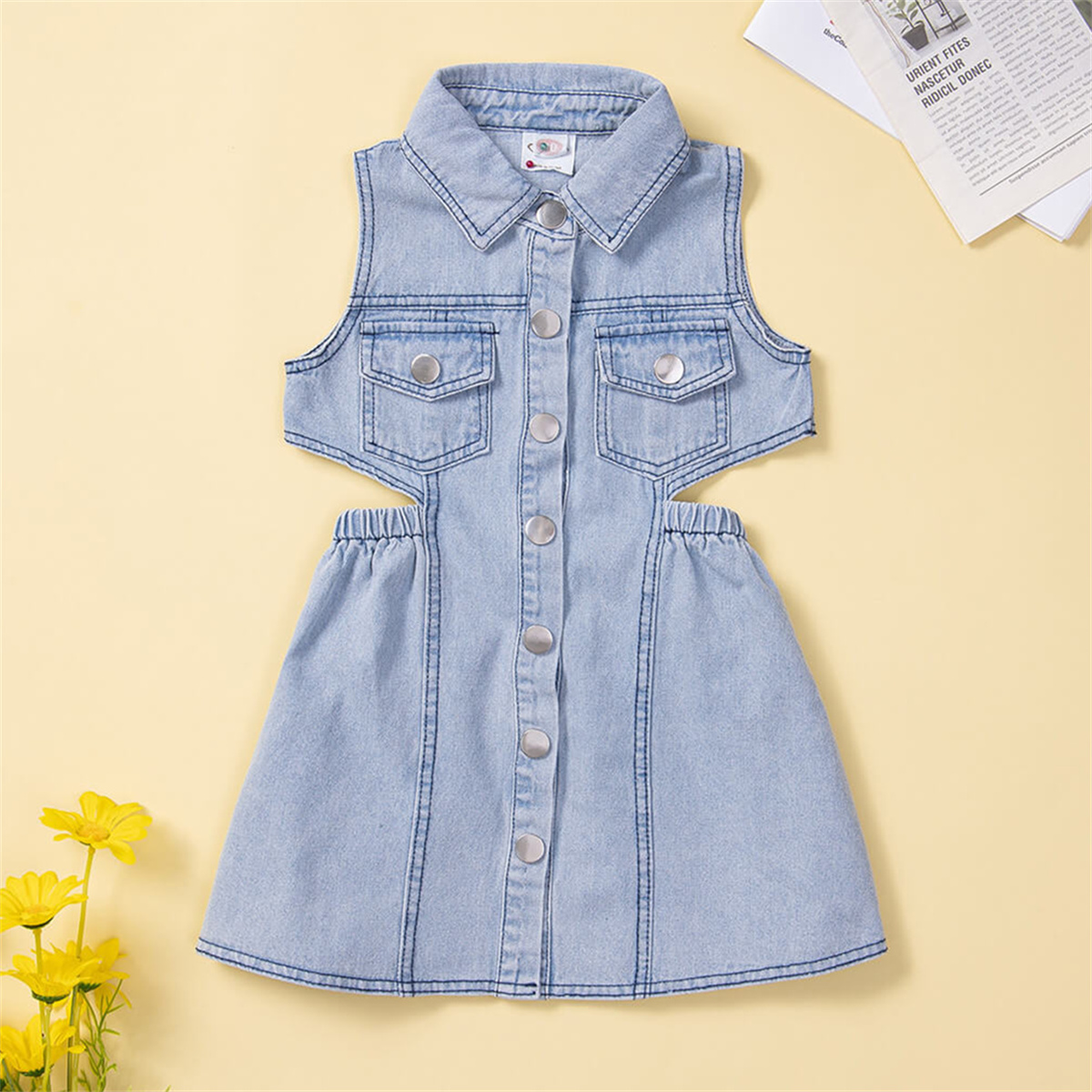 Toddler Girl Lapel Denim A-line skirt Denim Dress Wholesale
