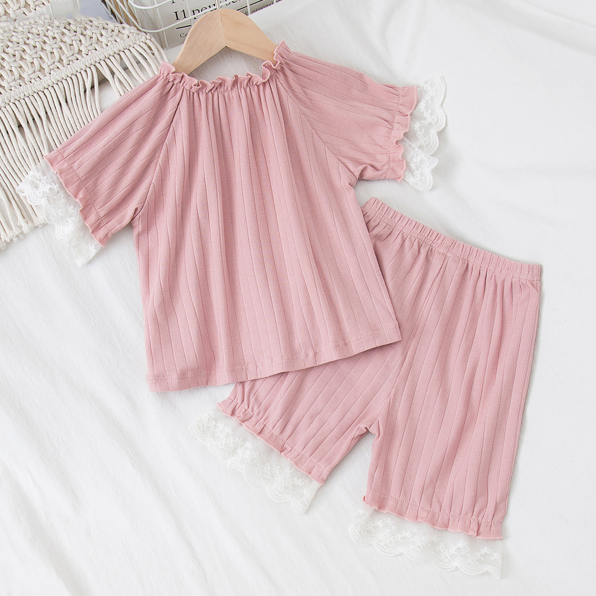 Toddler Girl Solid Cotton Pajamas Top & Short Wholesale