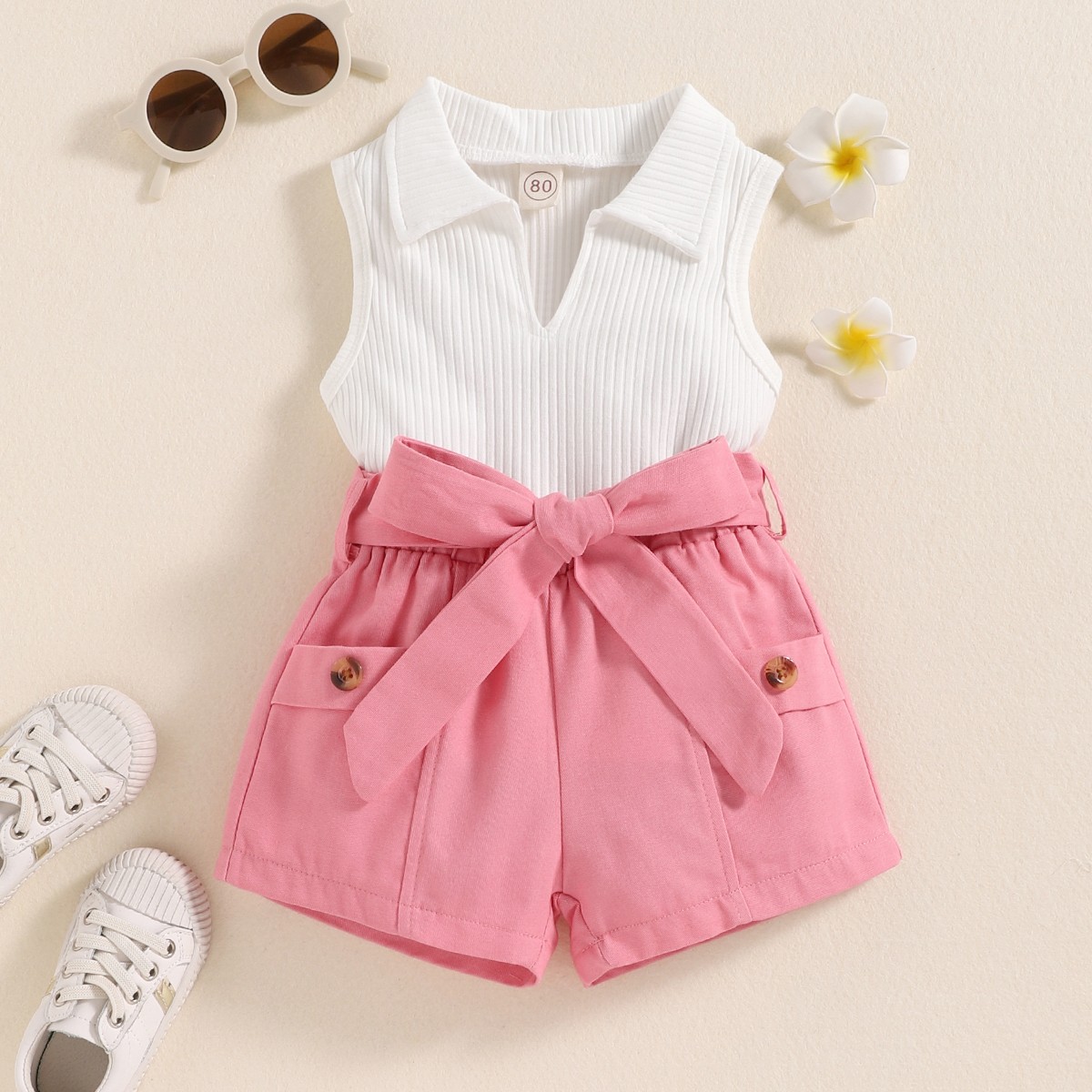 Toddler Girl Solid Cotton Ribbed V-neck Top & Shorts Wholesale