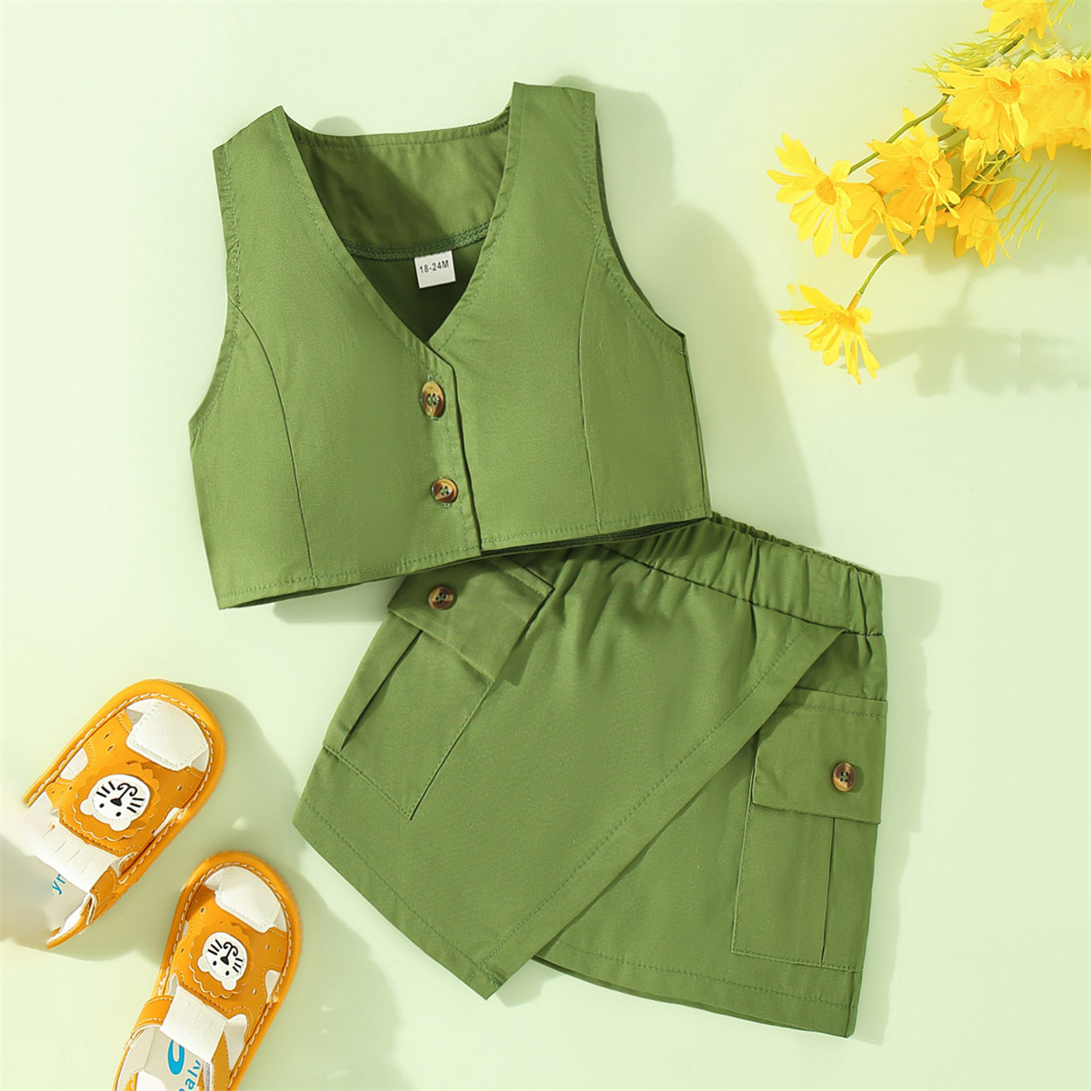 Toddler Girl Solid Cotton Top & Skirt Dress Set Wholesale